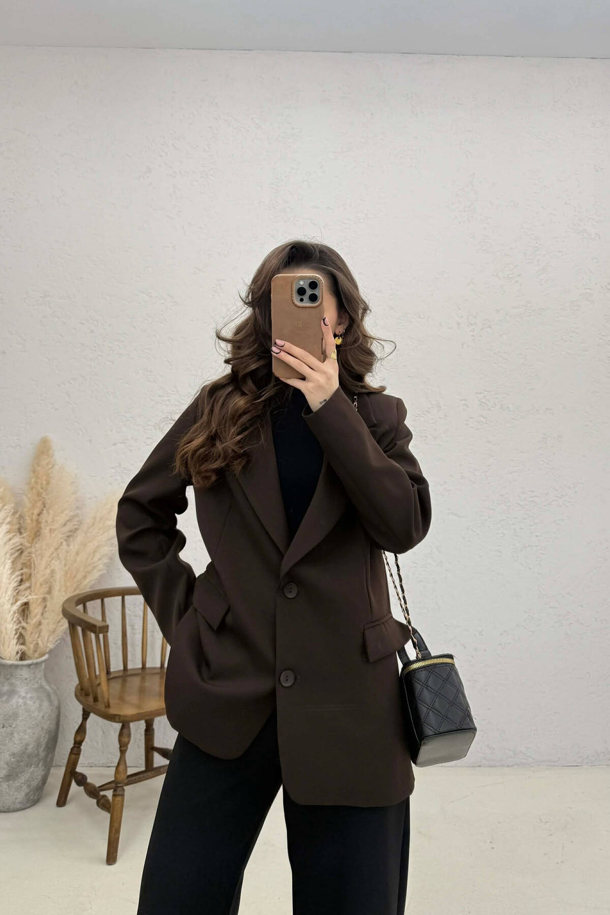 XHAKETË NJË NGJYRËSHE ME DETAJIN E LIDHSES PËR FEMRA NË NGJYRE KAFE