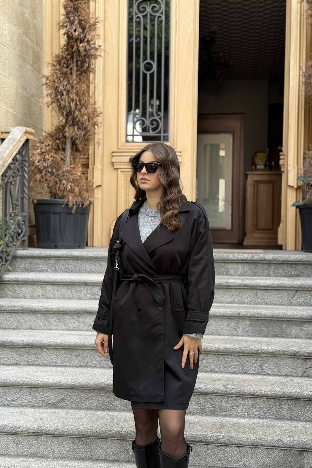 XHAKETË NJË NGJYRËSHE ME DETAJIN E RRIPIT PËR FEMRA NË NGJYRËN E ZEZË