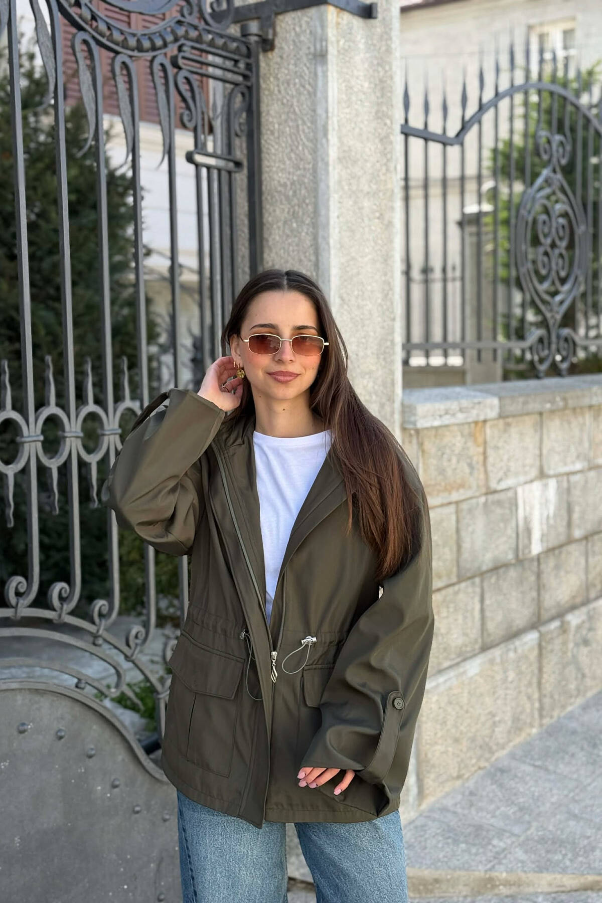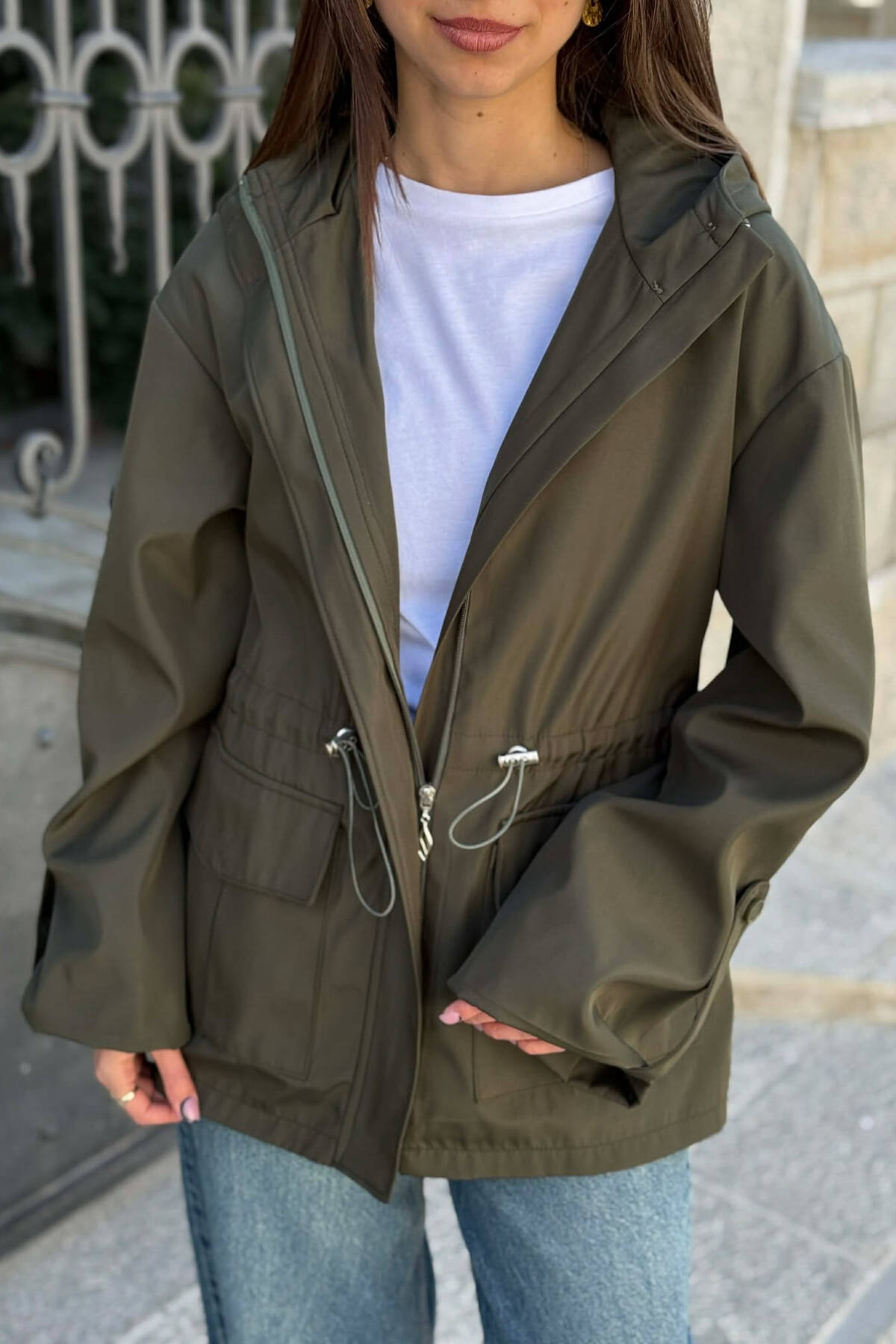 XHAKETE NJE NGJYRESHE ME KAPUÇ DHE ZINXHIR PER FEMRA NE NGJYRE JESHILE