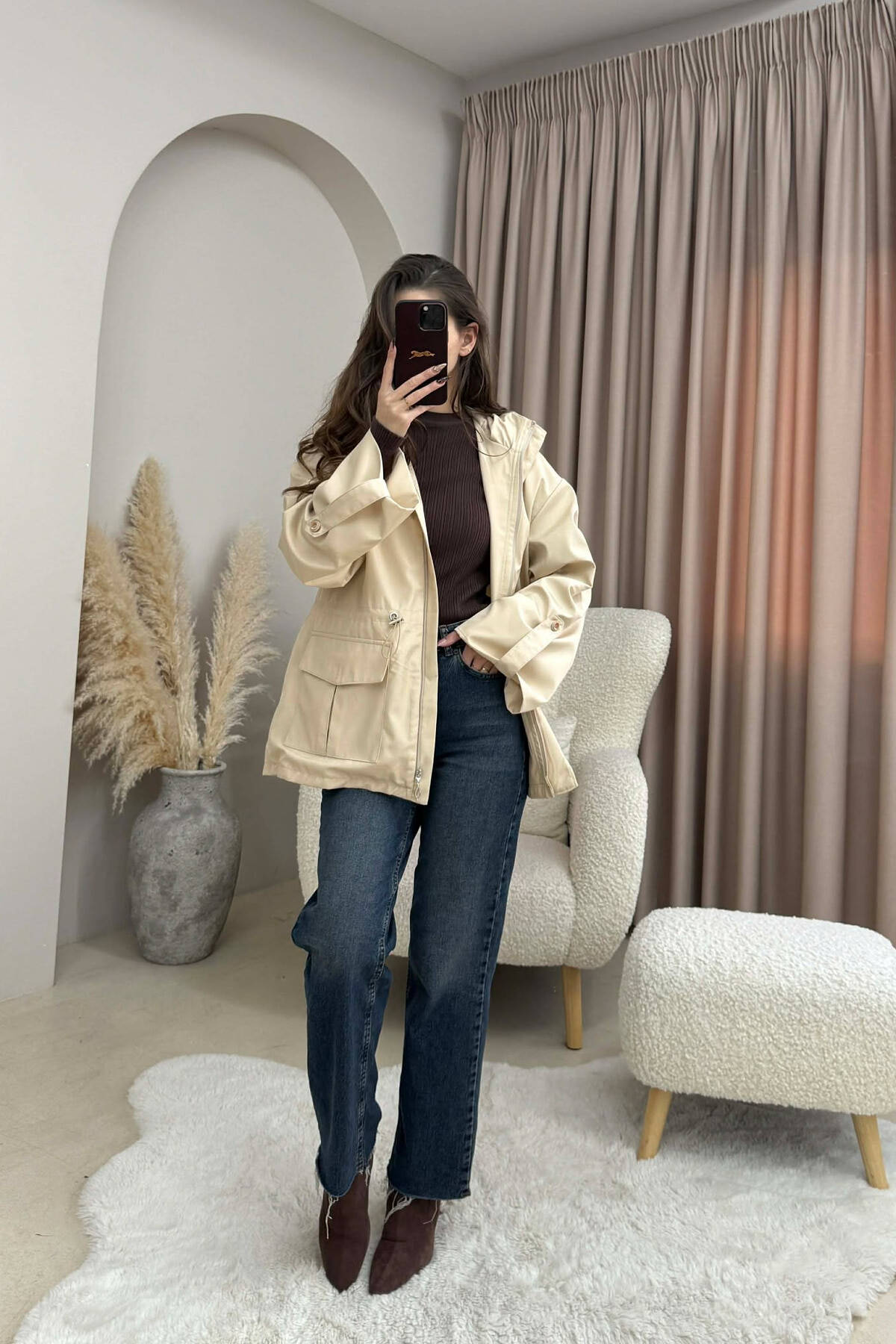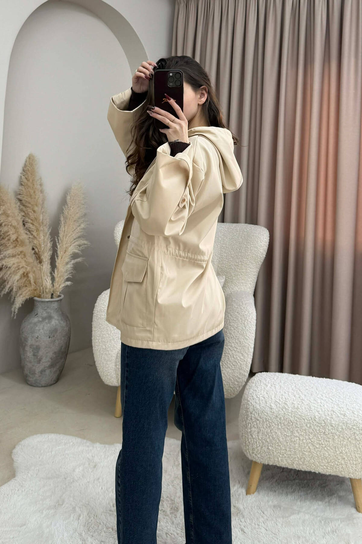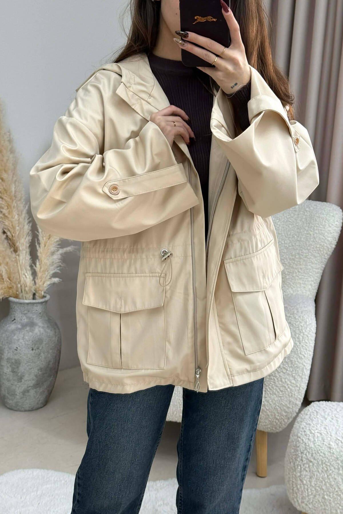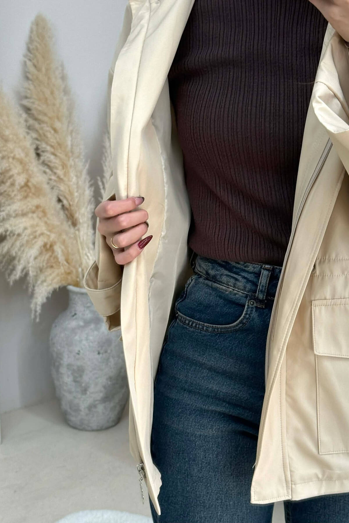 XHAKETE NJE NGJYRESHE ME KAPUÇ DHE ZINXHIR PER FEMRA NE NGJYRE KREM