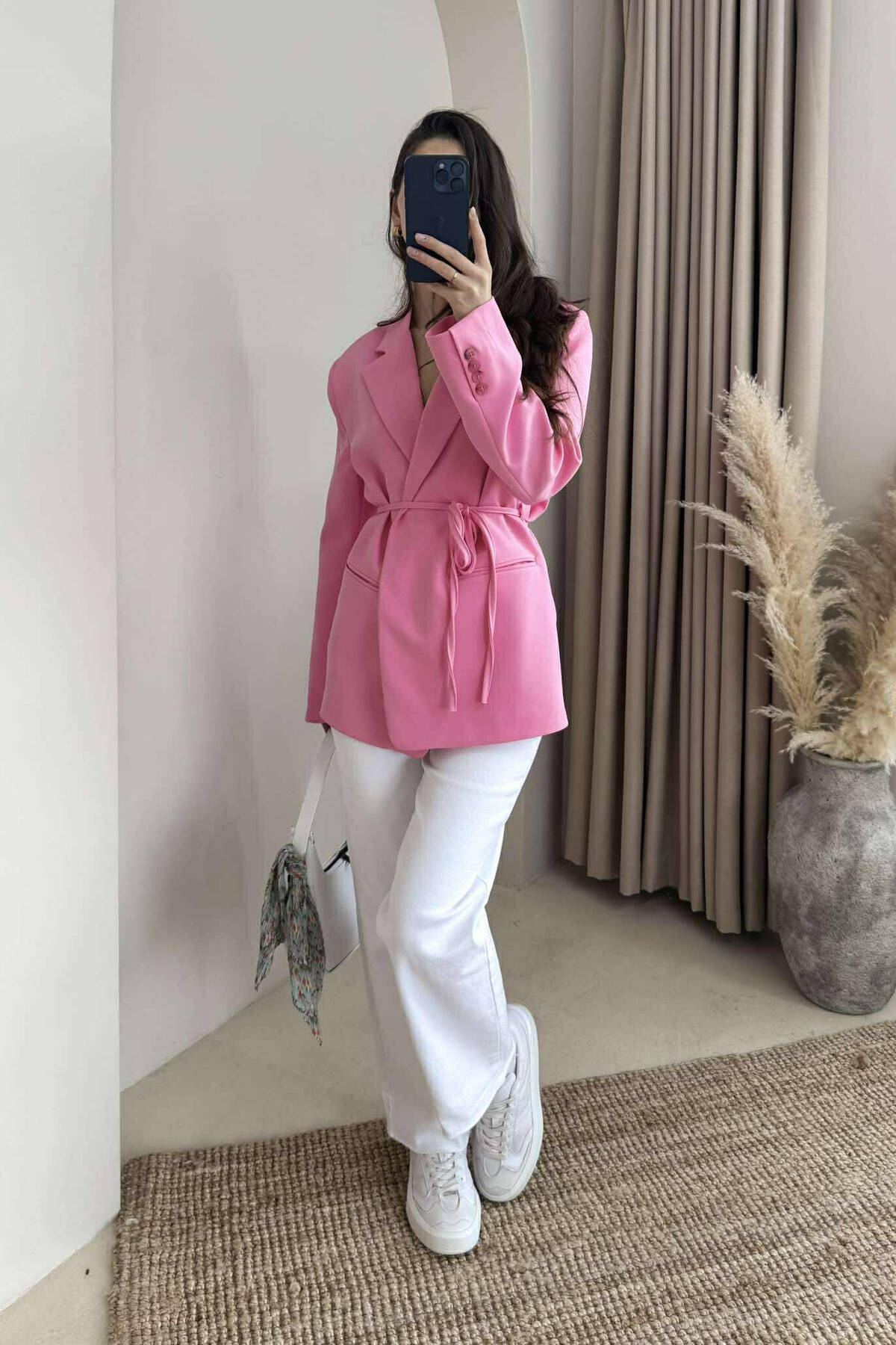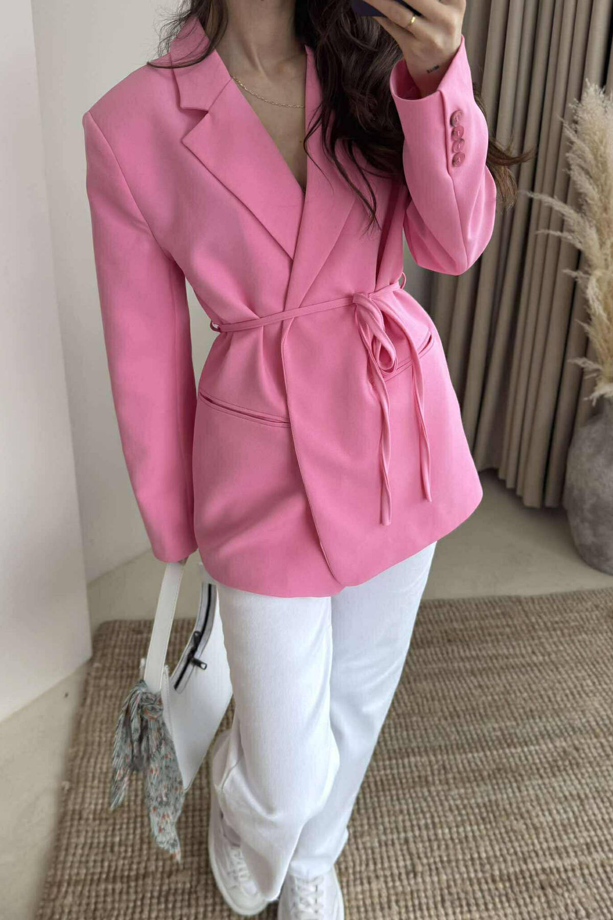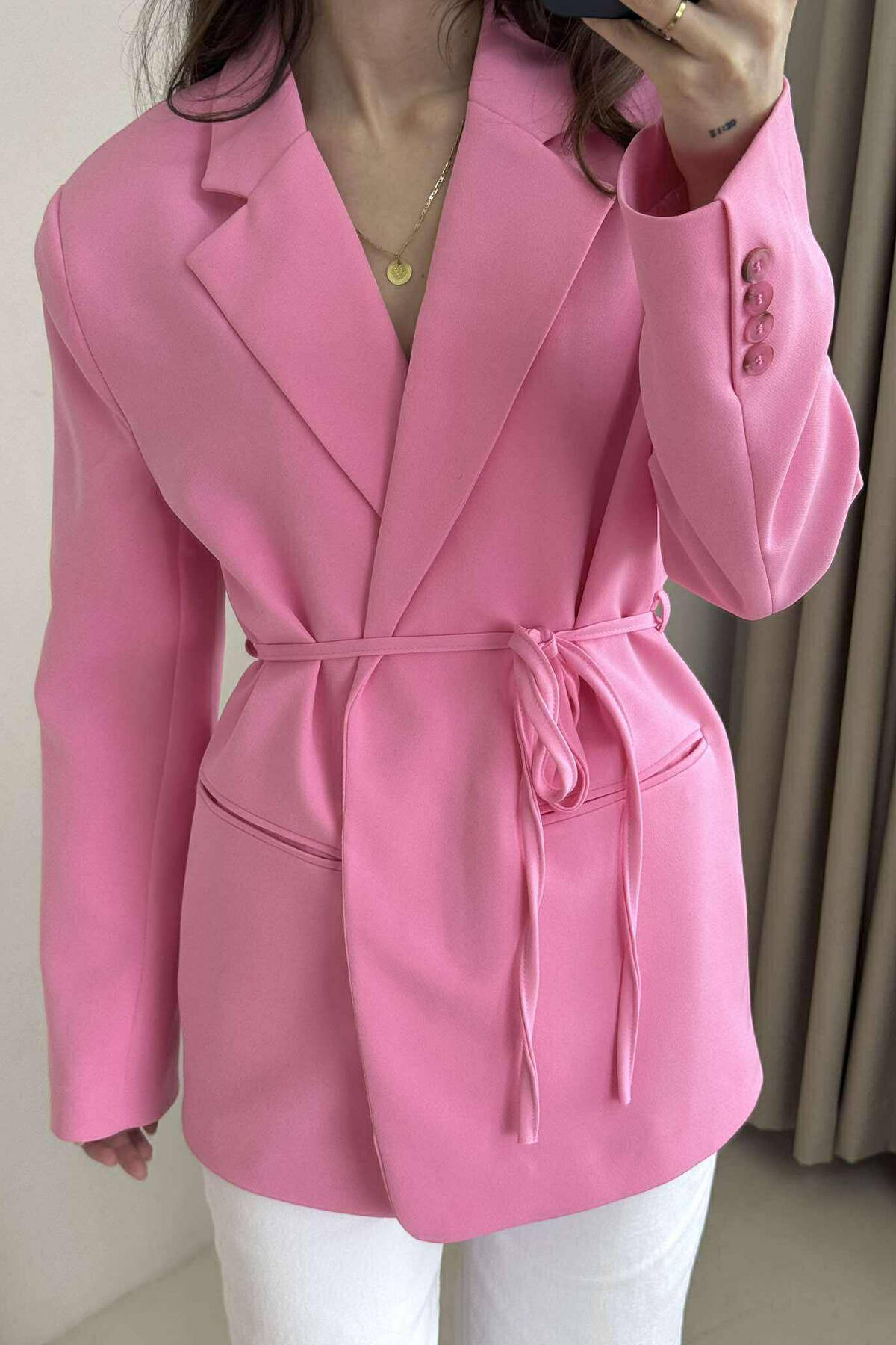 XHAKETË NJË NGJYRËSHE ME DETAJIN E LIDHSES PËR FEMRA NË NGJYRËN ROZË