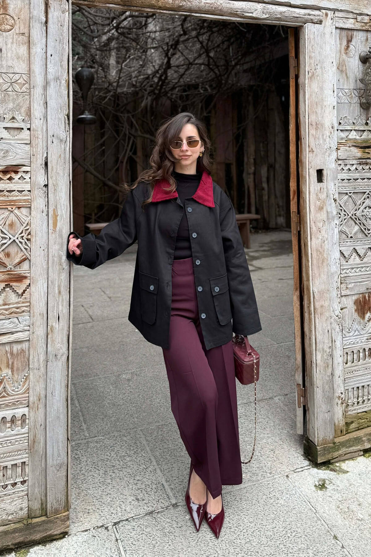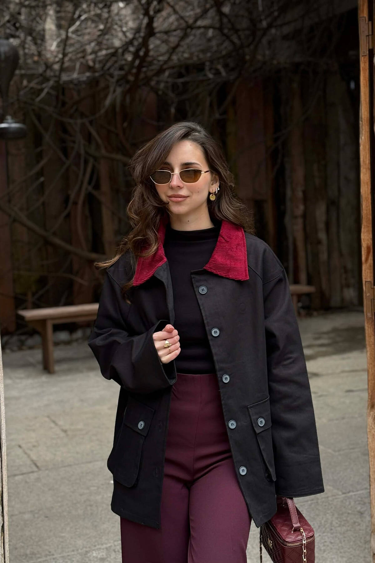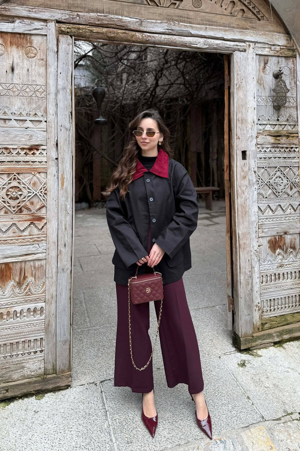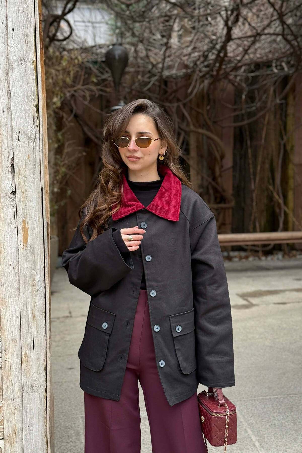 XHAKETË KLASIKE NJË NGJYRËSHE PËR FEMRA NË NGJYRE VISHNJE