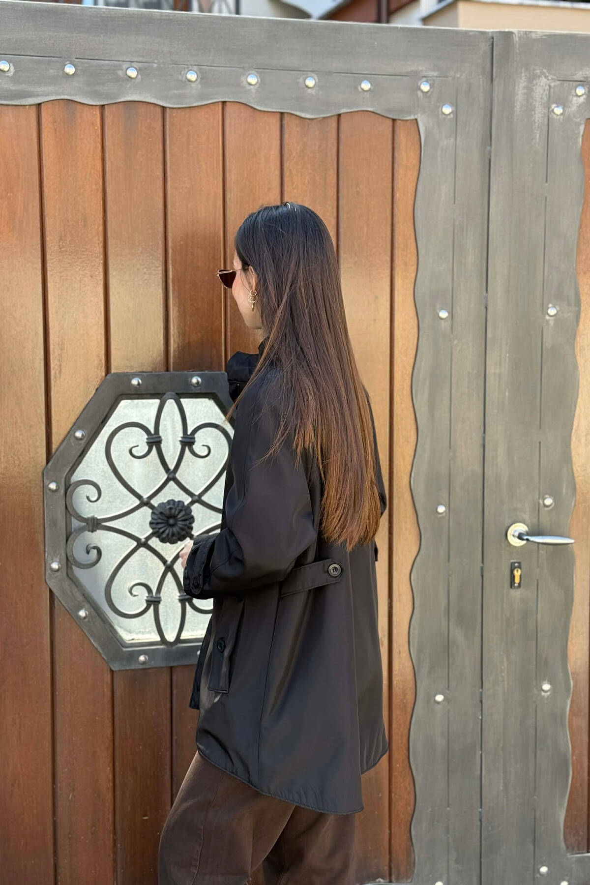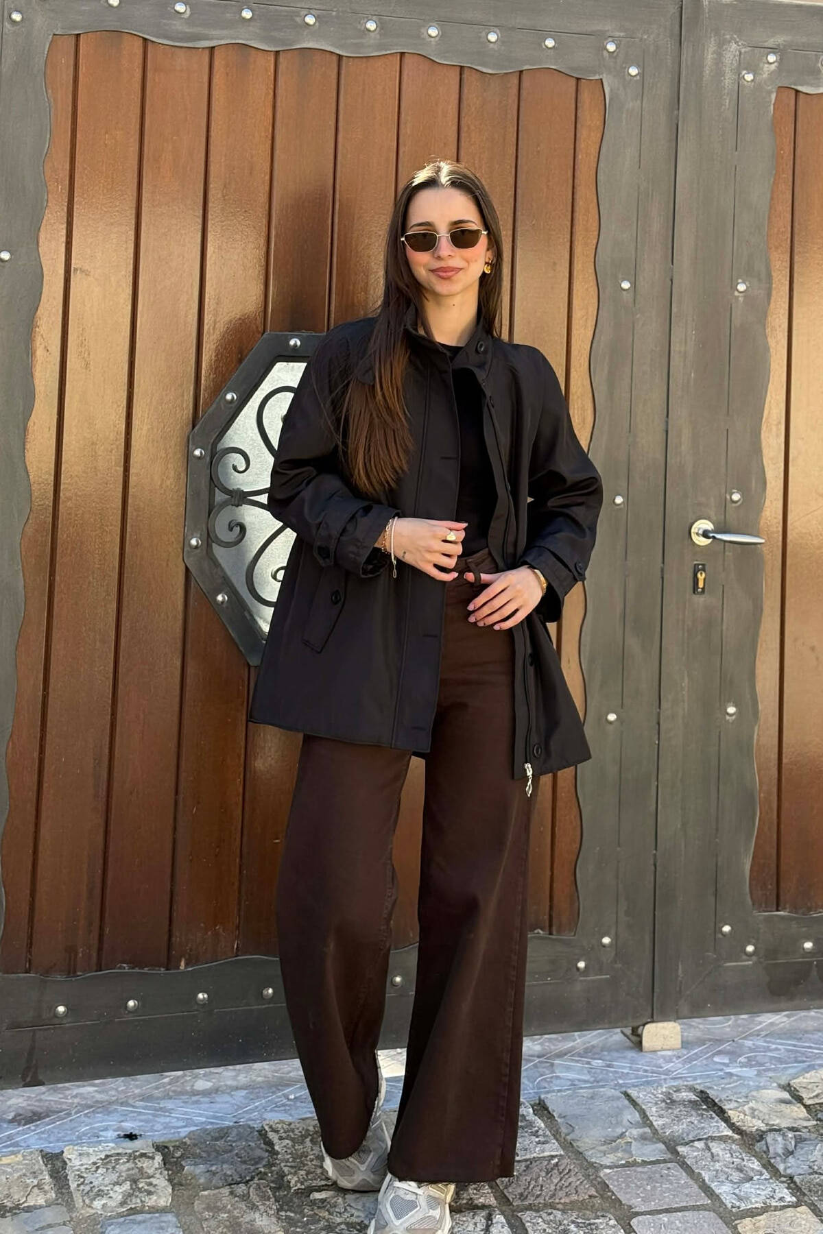 XHAKETË NJË NGJYRËSHE ME DETAJIN E LIDHSES PËR FEMRA NË NGJYRE KAFE