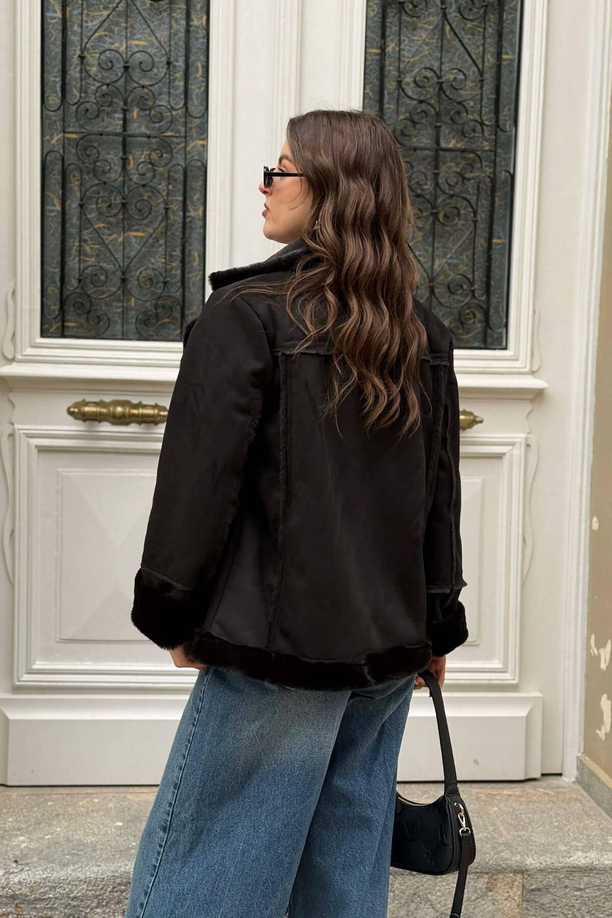 PALLTO NJE NGJYRESHE LEKURE ME KOPSA DHE ME DETAJIN E RRIPIT NE NGJYRE KAFE