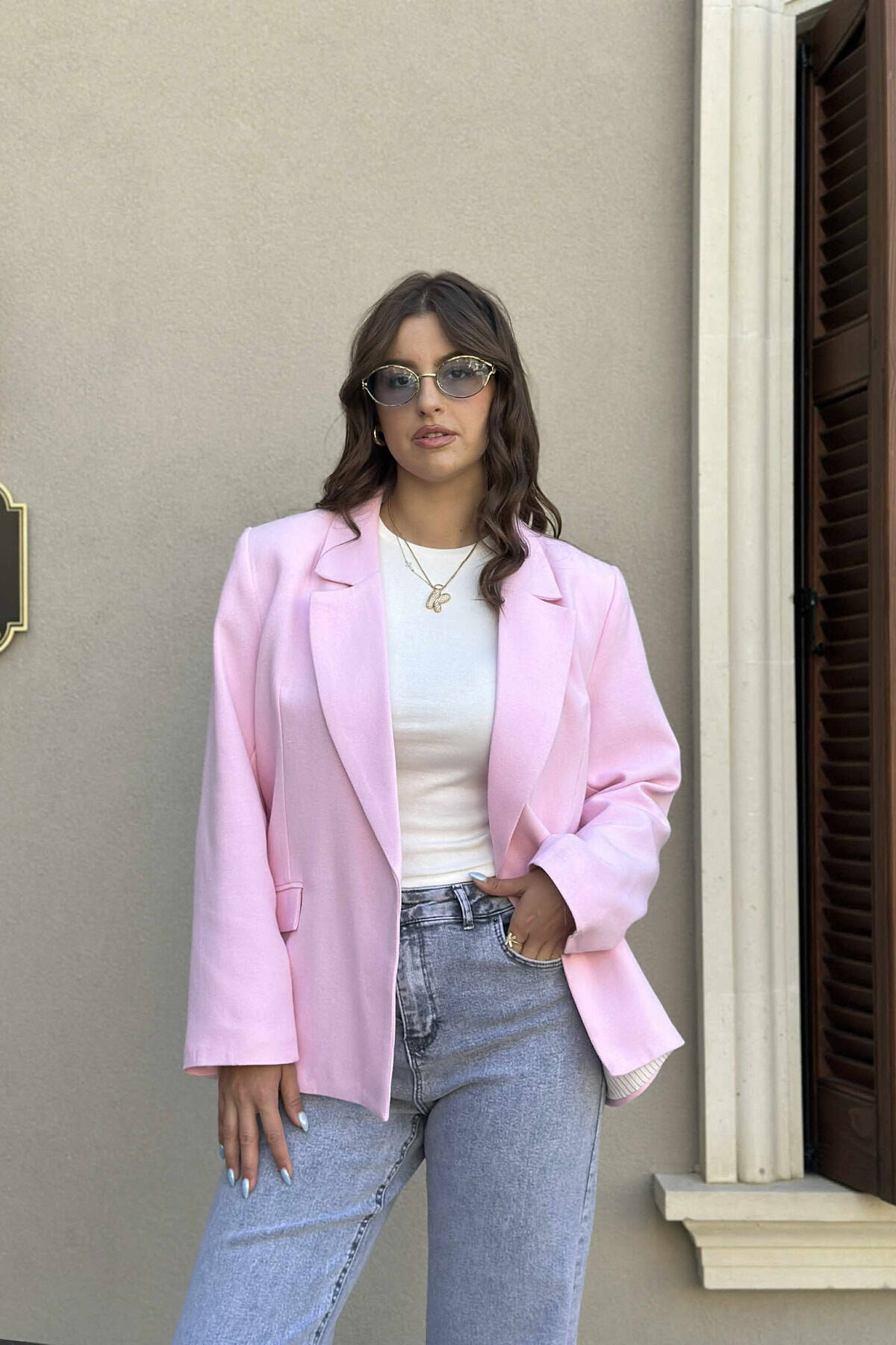 Xhaketë   Një  Ngjyrëshe  Për  Femra  Në  Ngjyrë  Rozë