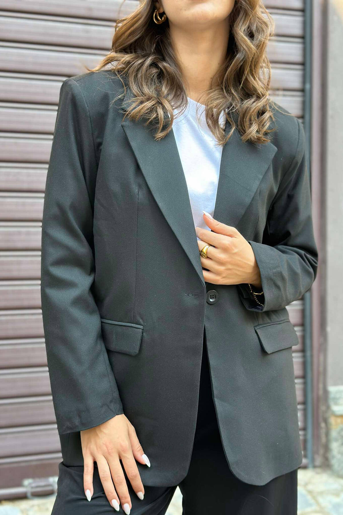 Xhaketë Një Ngjyrëshe Për Femra Në Ngjyrë Të Zezë
