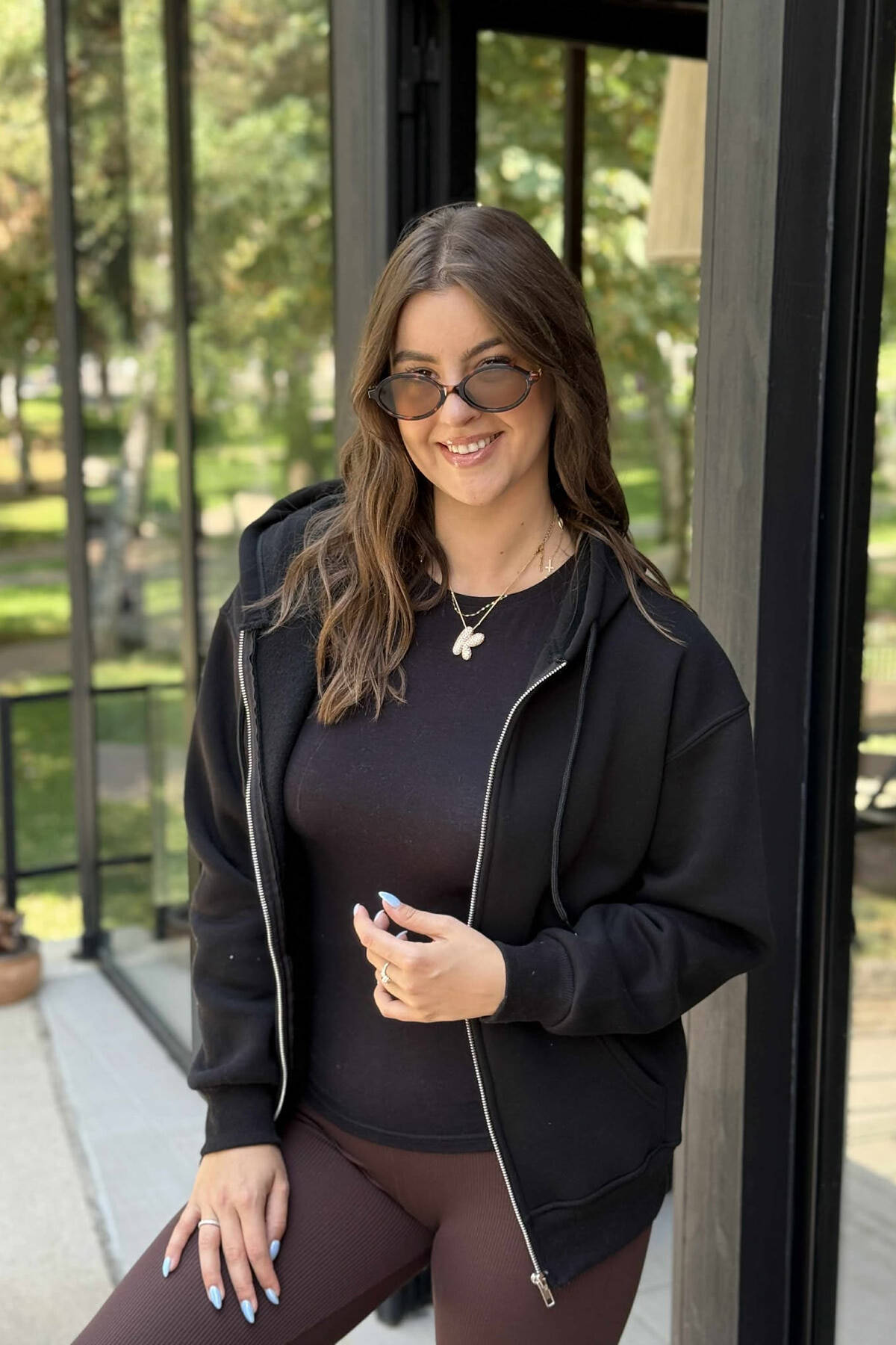 Xhaketë Pambuku Një Ngjyrëshe Për Femra Në Ngjyrën E Zezë