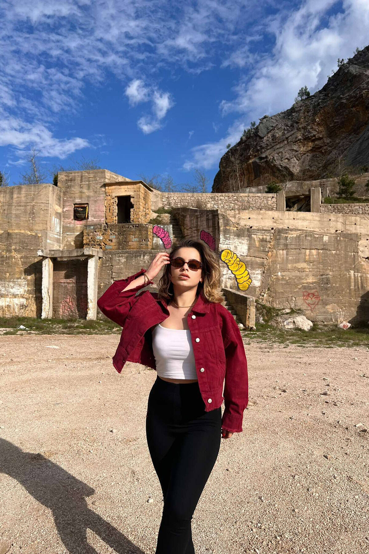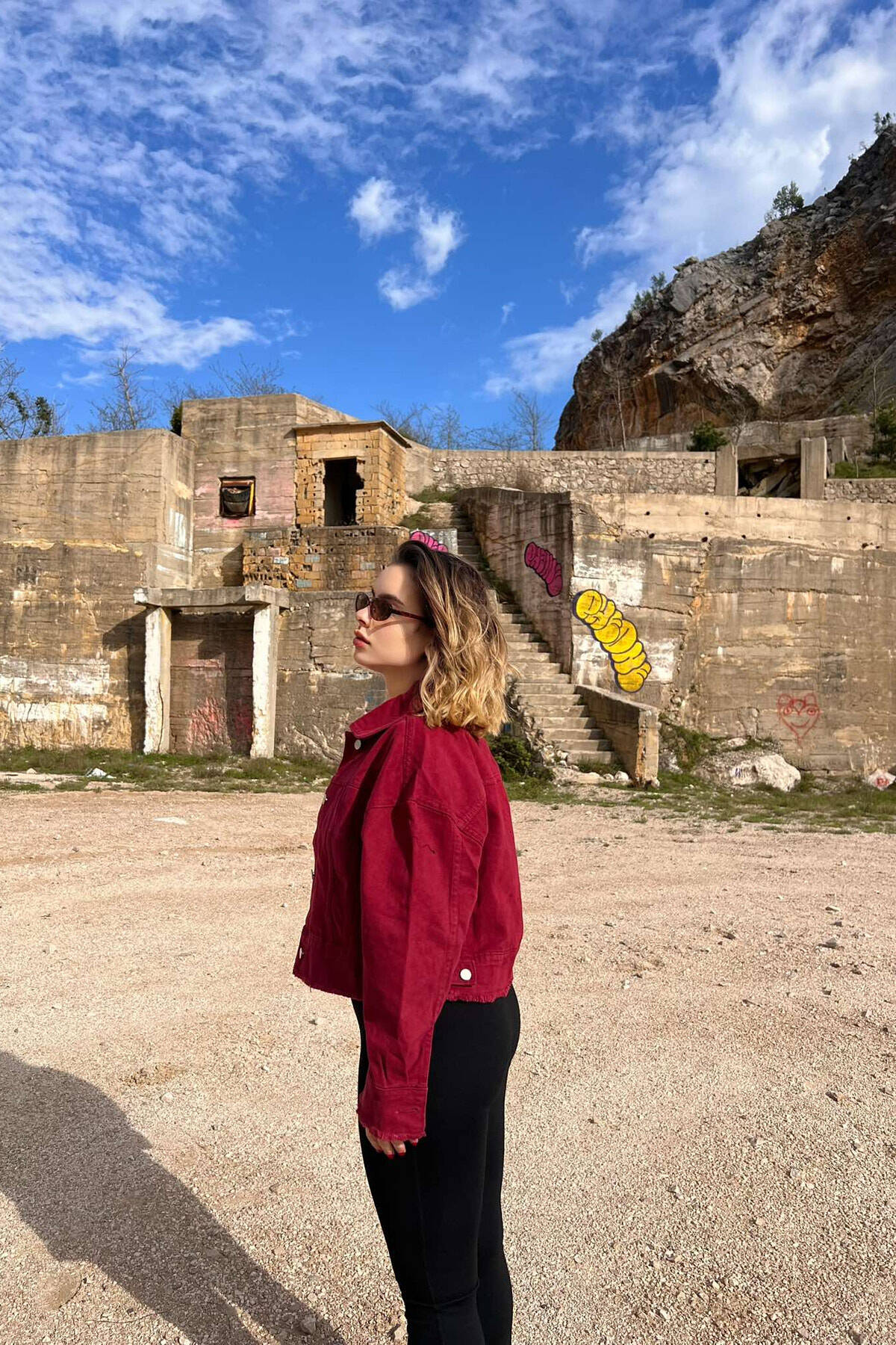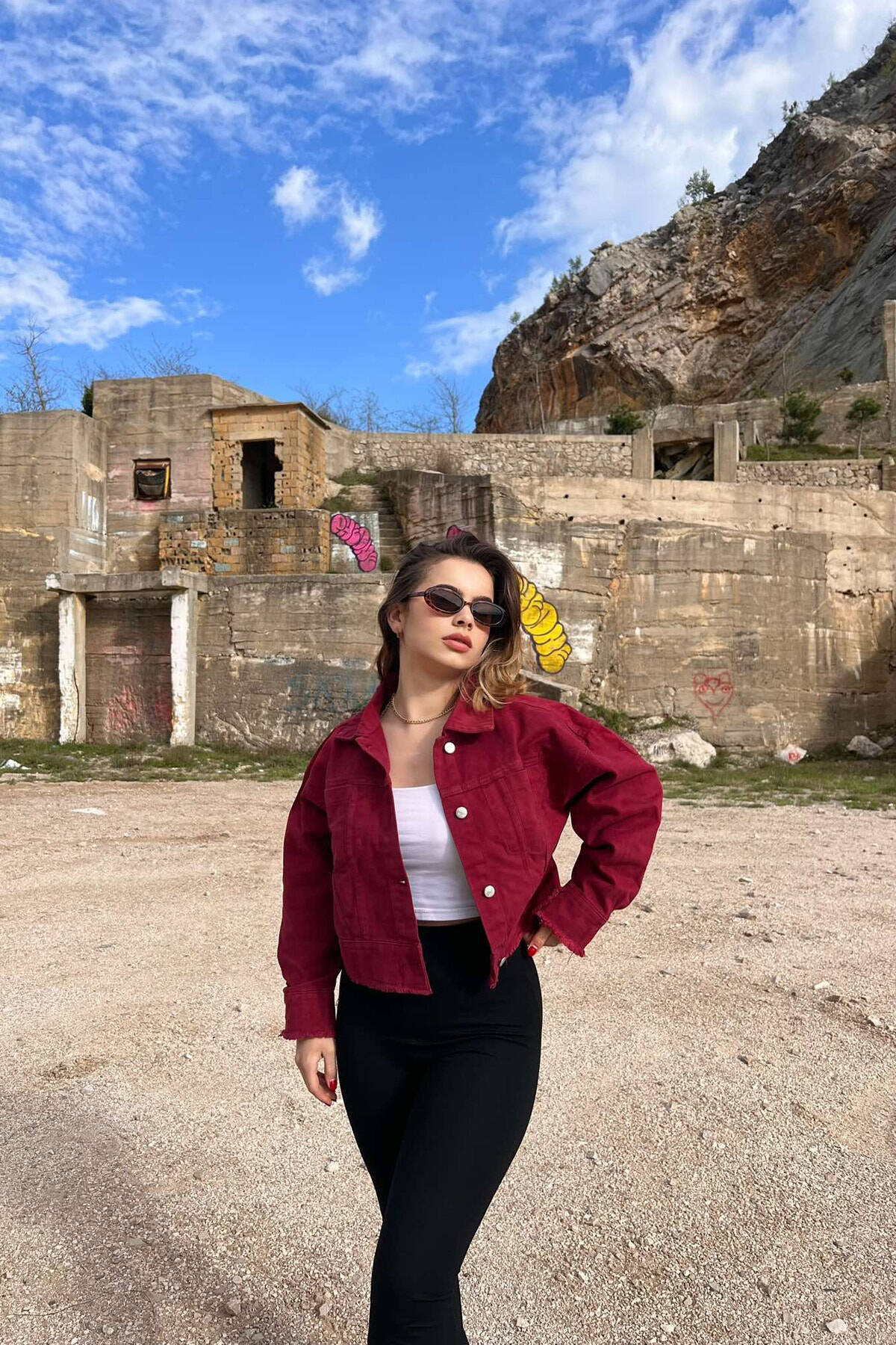 XHAKETË XHINS E SHKURTËR PËR FEMRA NË NGJYRËN VISHNJË