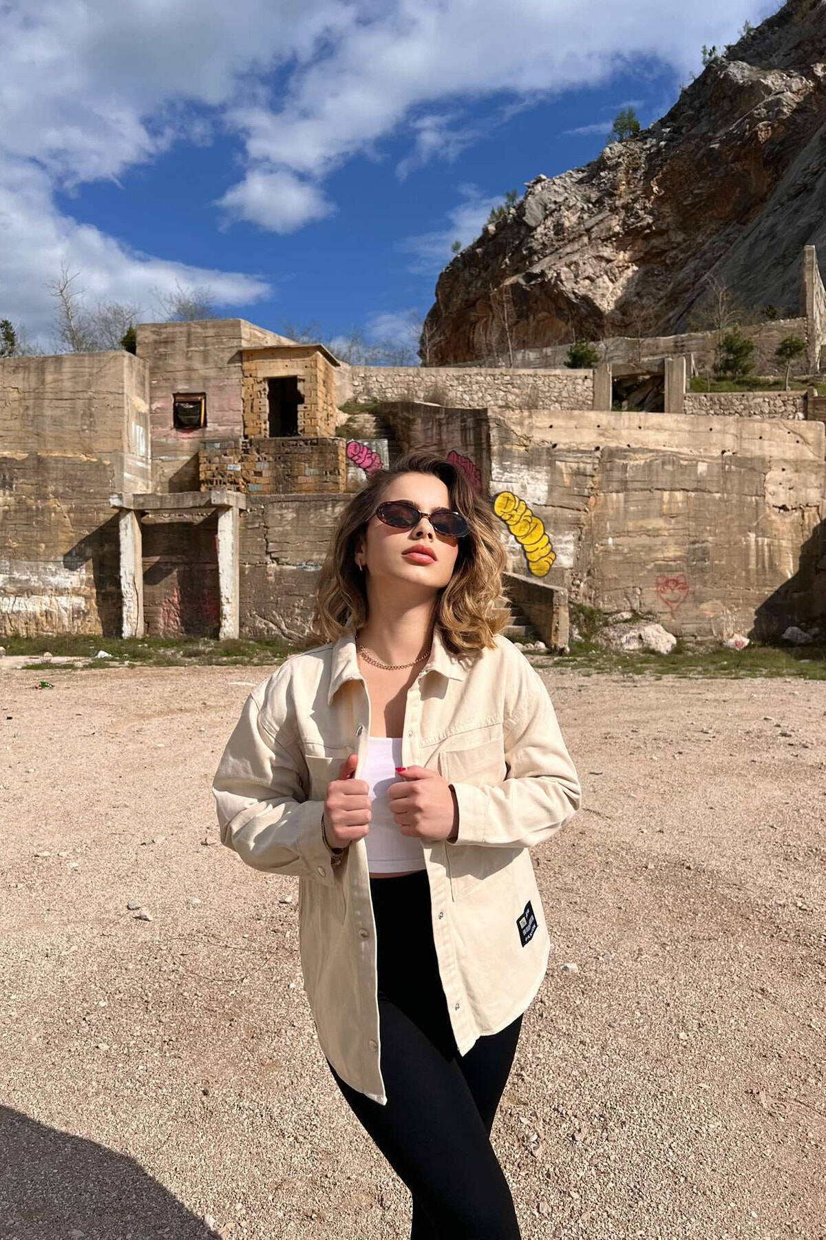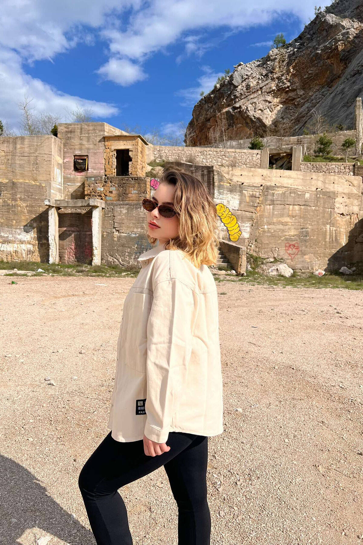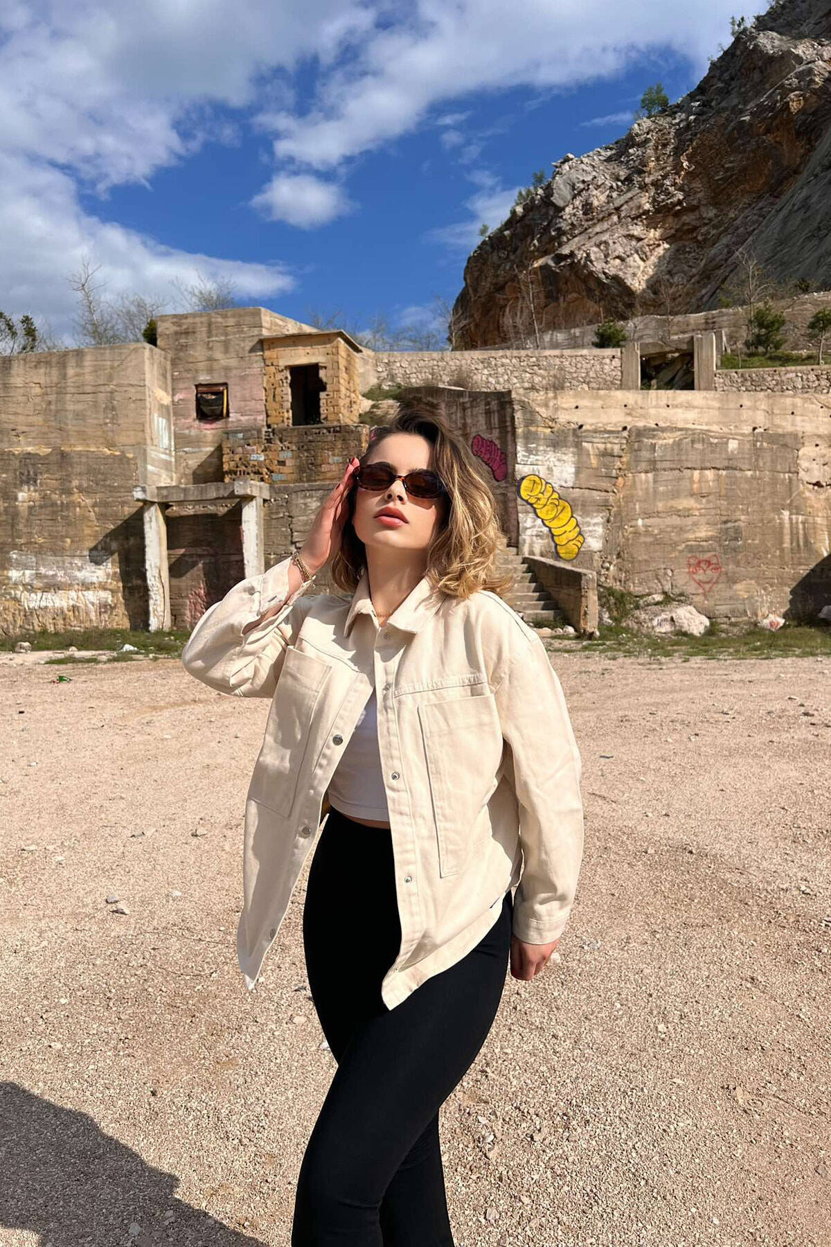 XHAKETË XHINS ME LOGO PËR FEMRA NË NGJYRËN KREM