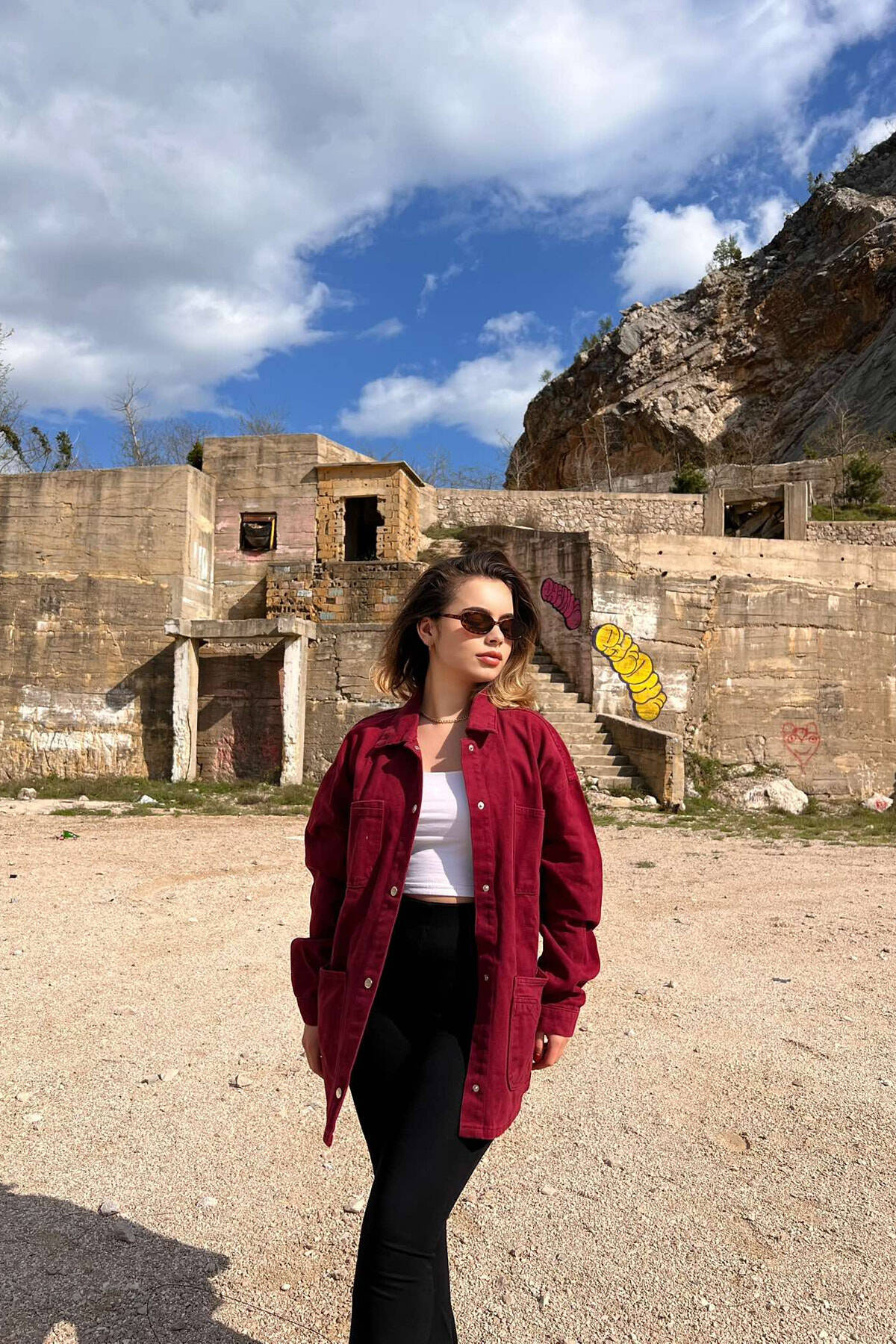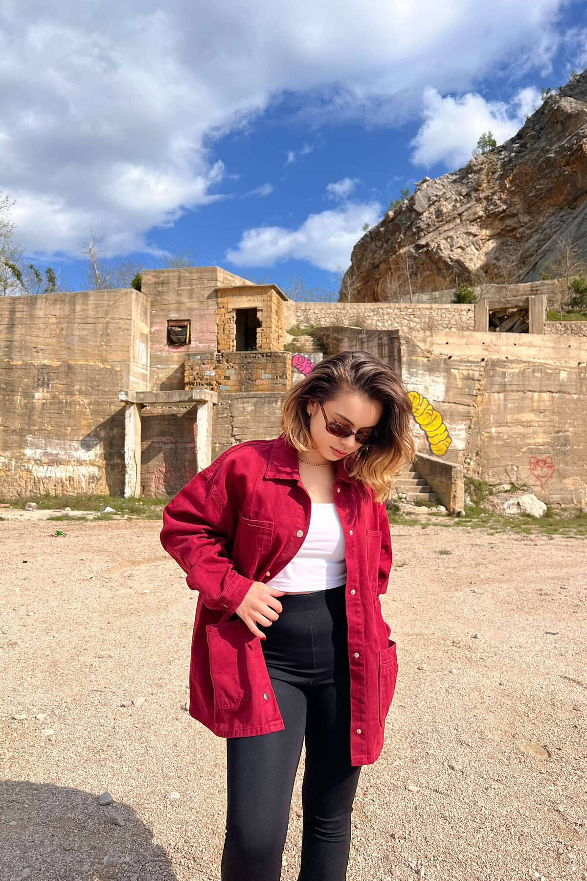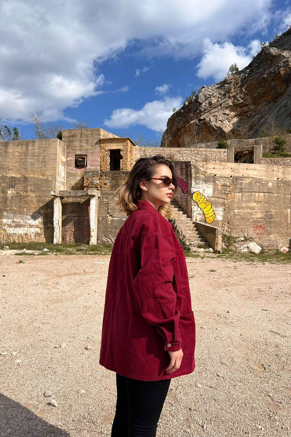 XHAKETË XHINS ME XHEPA PËR FEMRA NË NGJYRËN VISHNJË