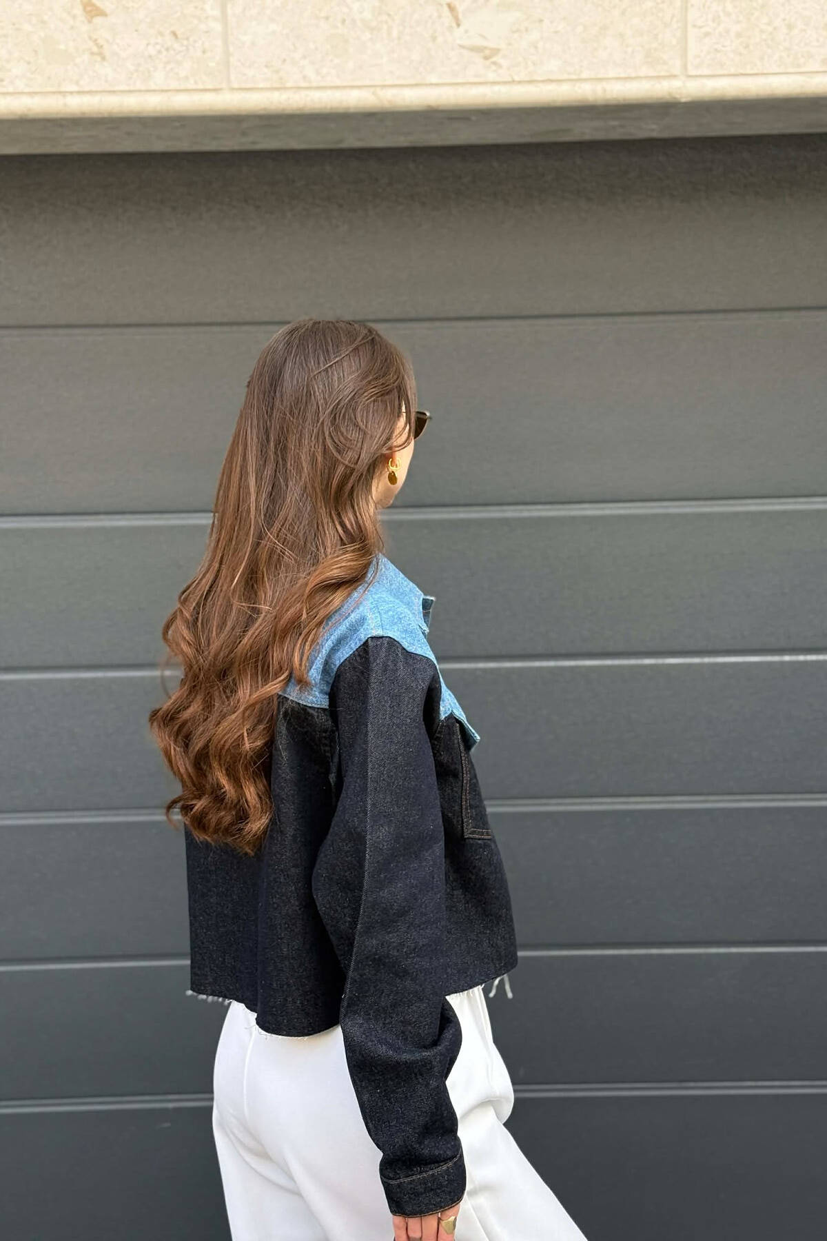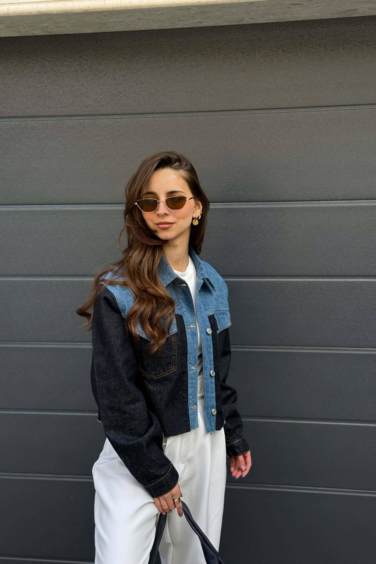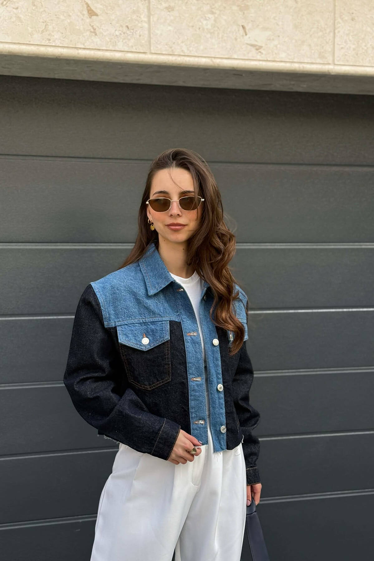 ONE COLOR CROPPED DENIM WOMEN JACKET BROWN/KAFE