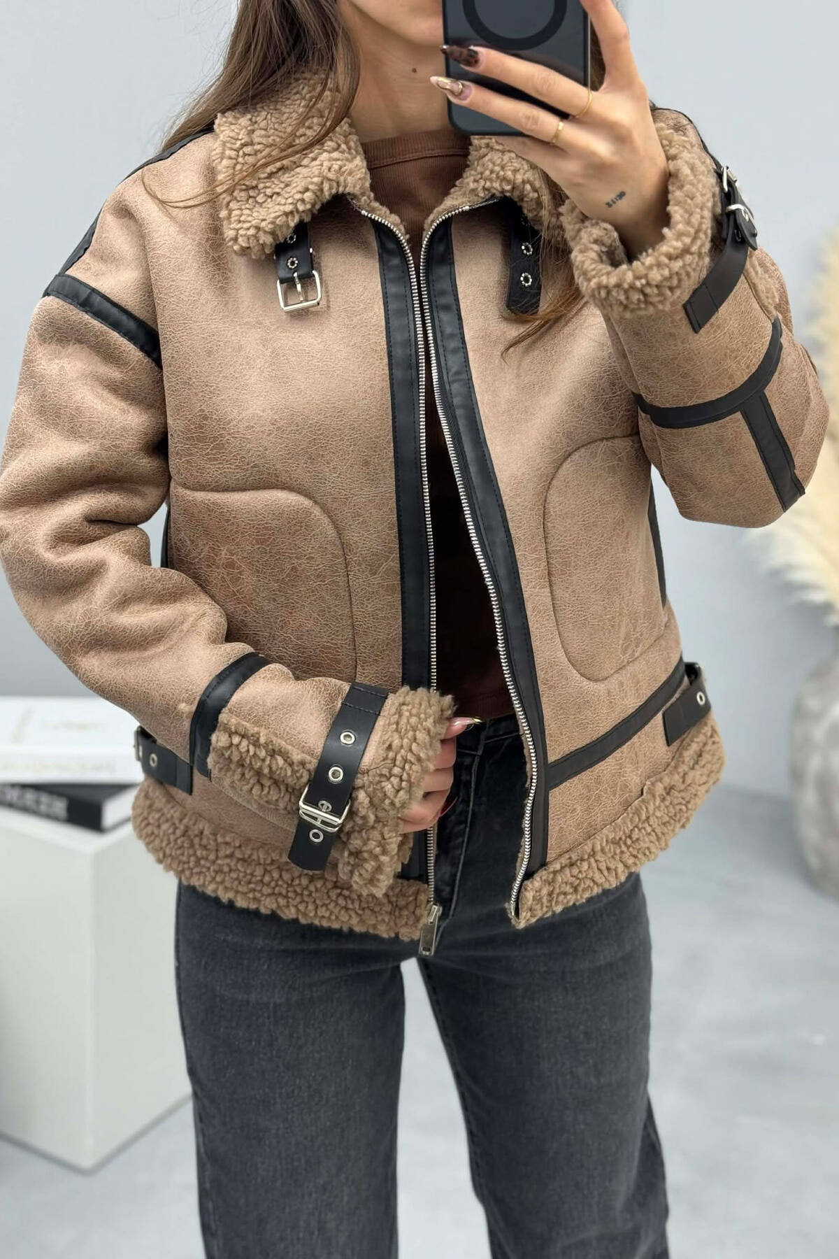 BLUZE E SHKURTER ME PUSH DHE JAKE ME ZINXHIR PER FEMRA NE NGJYRE KAFE TE ERRET