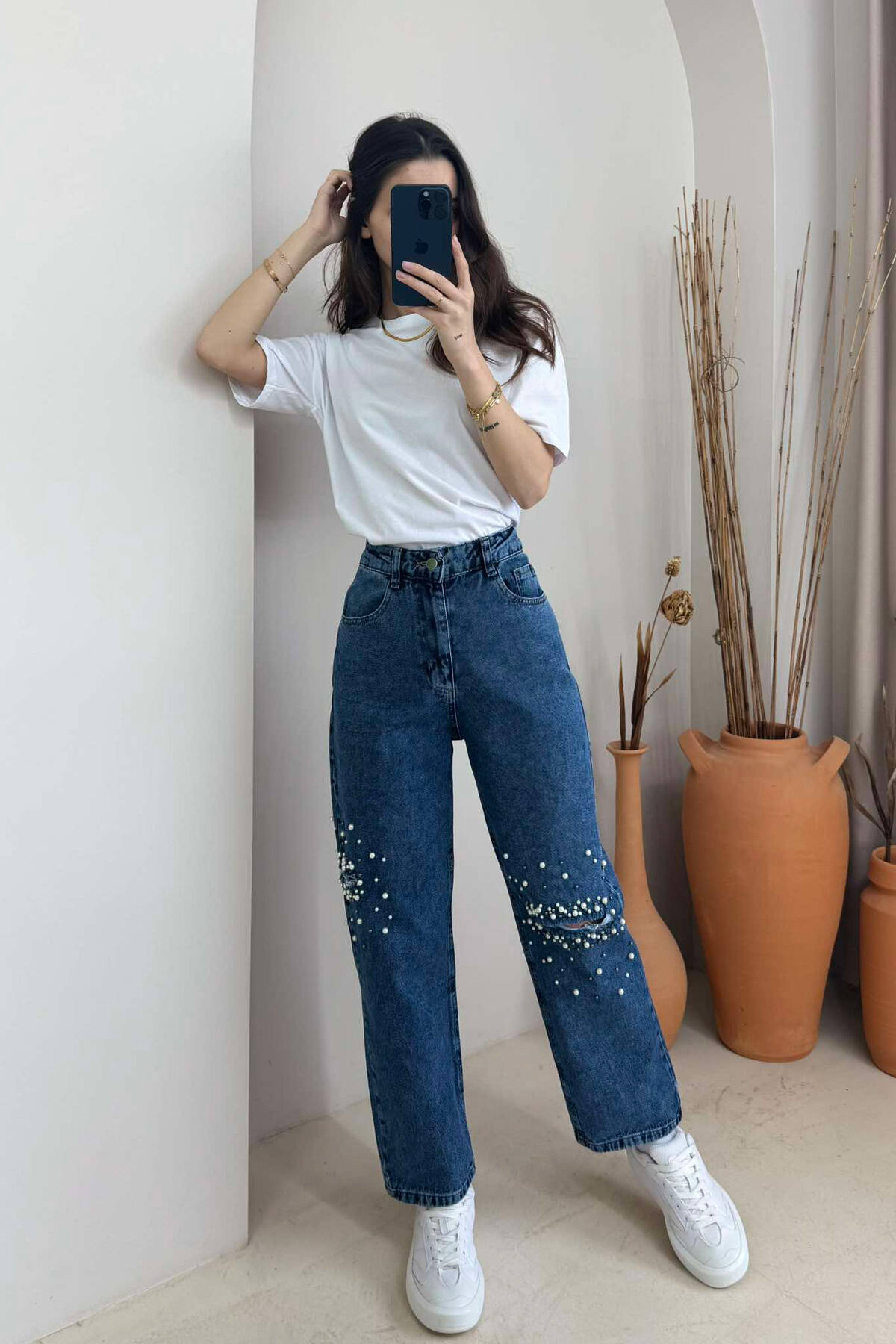 XHINSE ME DETAJIN E PERLAVE PËR FEMRA NË NGJYRËN BLU E ZBARDHUR