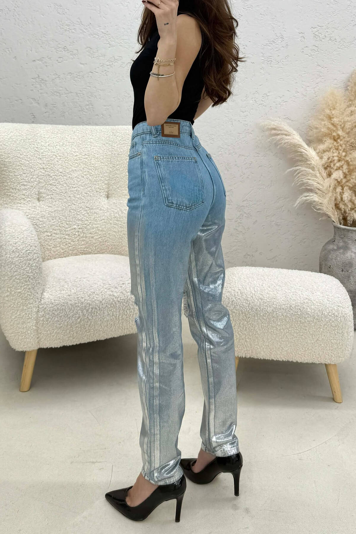 ONE COLOR DENIM SIMPLE WOMEN JEANS BROWN/KAFE