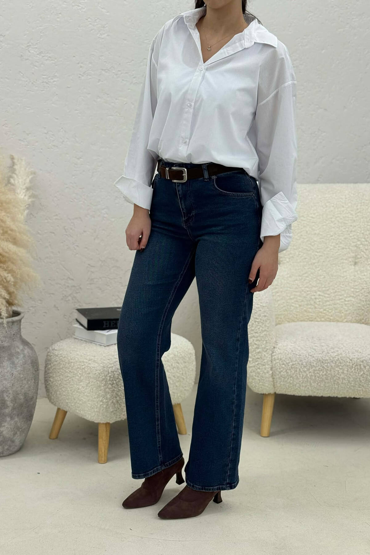 ONE COLOR DENIM SIMPLE WOMEN JEANS BROWN/KAFE