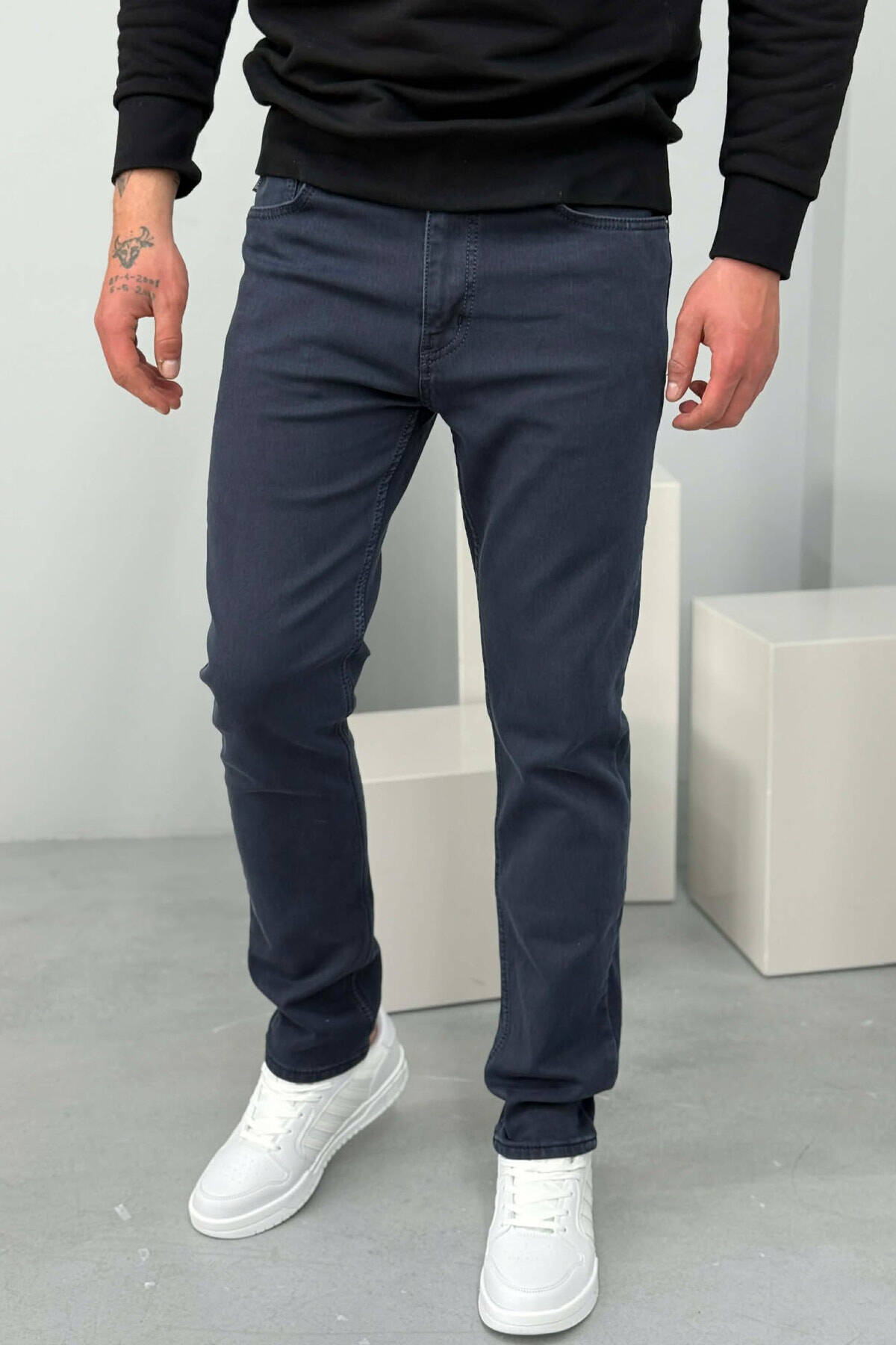 XHINSE TË THJESHTA NJË NGJYRËSHE ME ELASTICITET PËR MESHKUJ NË NGJYRË BLU