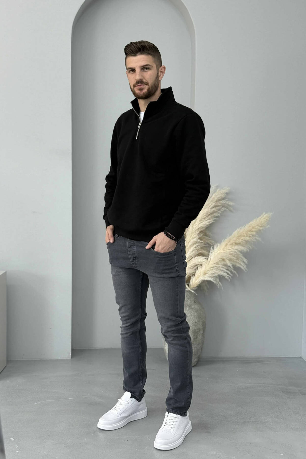 XHINSE TË THJESHTA NJË NGJYRËSHE ME ELASTICITET PËR MESHKUJ NË NGJYRË TË ZEZË