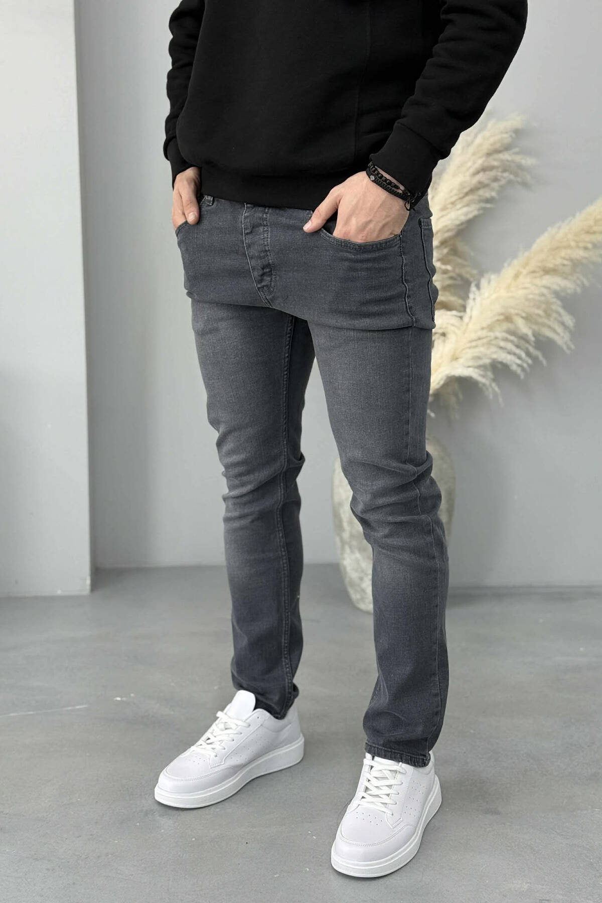 XHINSE NJË NGJYRËSHE ME ELASTICITET PËR MESHKUJ NË NGJYRË GRI