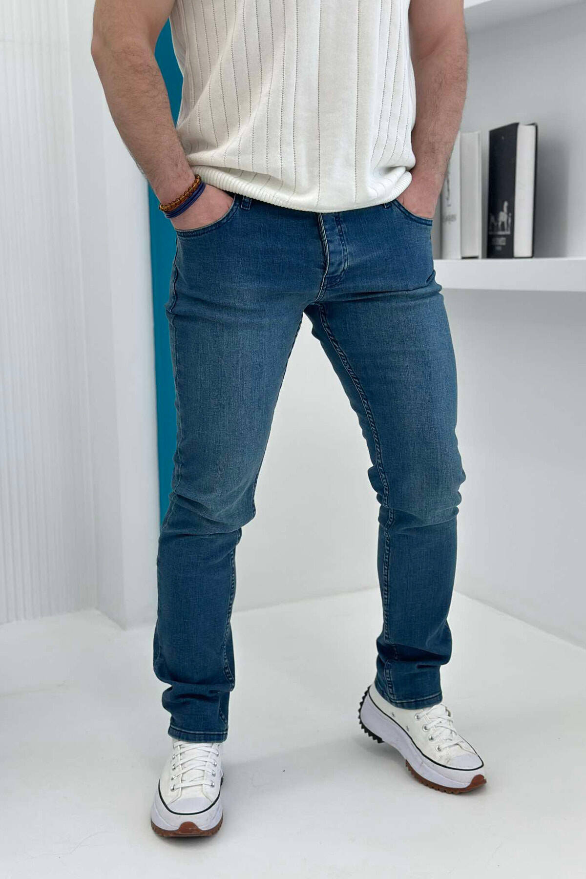 XHINSE TË THJESHTA NJË NGJYRËSHE ME ELASTICITET PËR MESHKUJ NË NGJYRË BLU