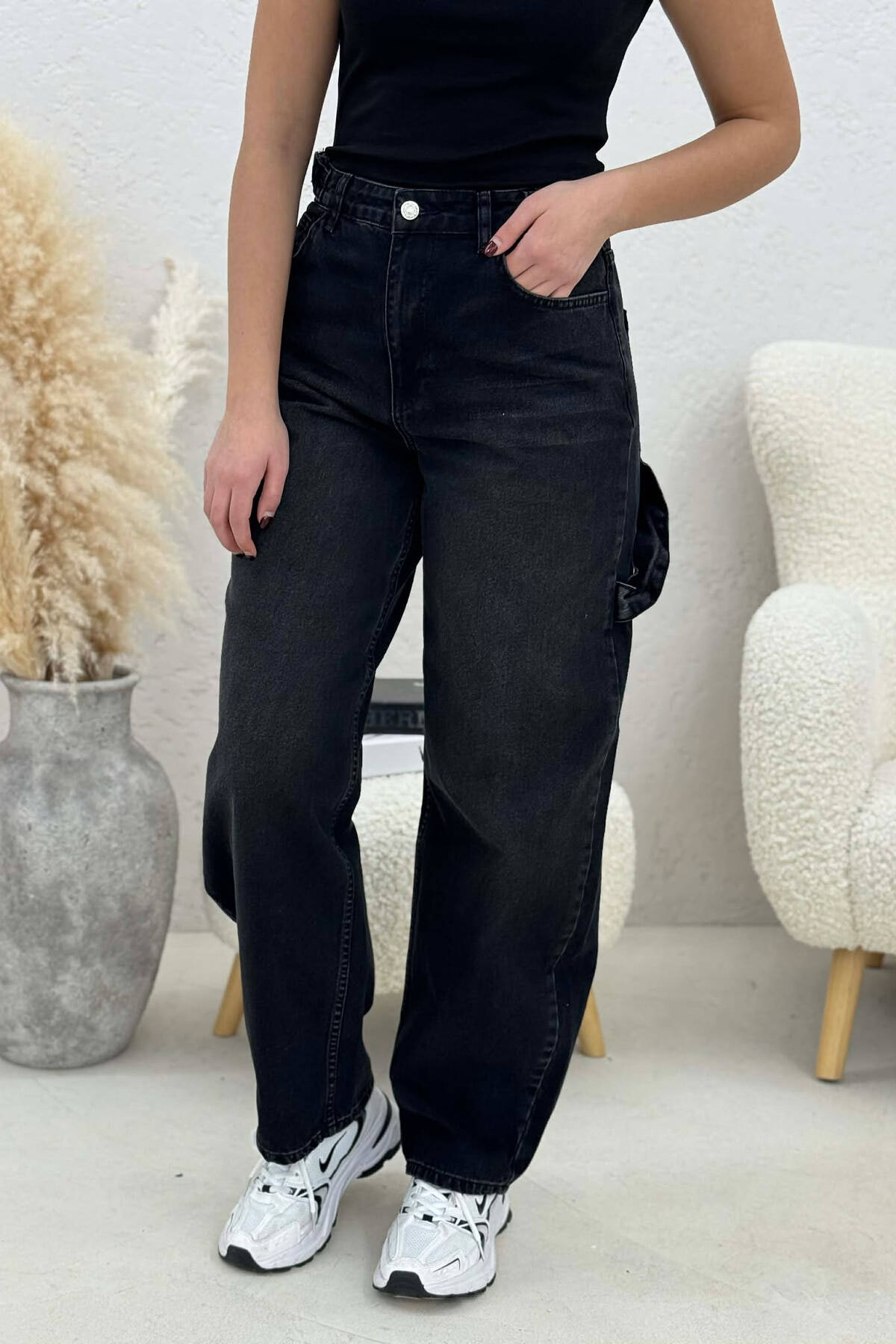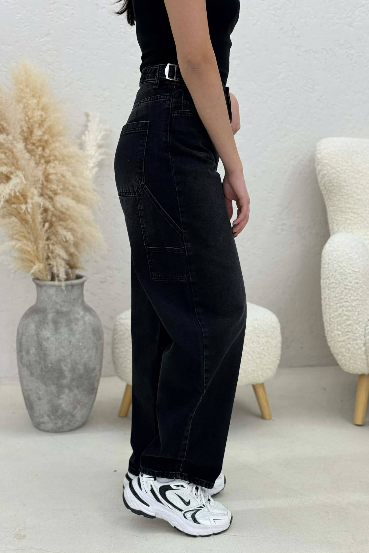 XHINSE PËR FEMRA ME DETAJIN E RRIPAVE NË NGJYRË TE ZEZE