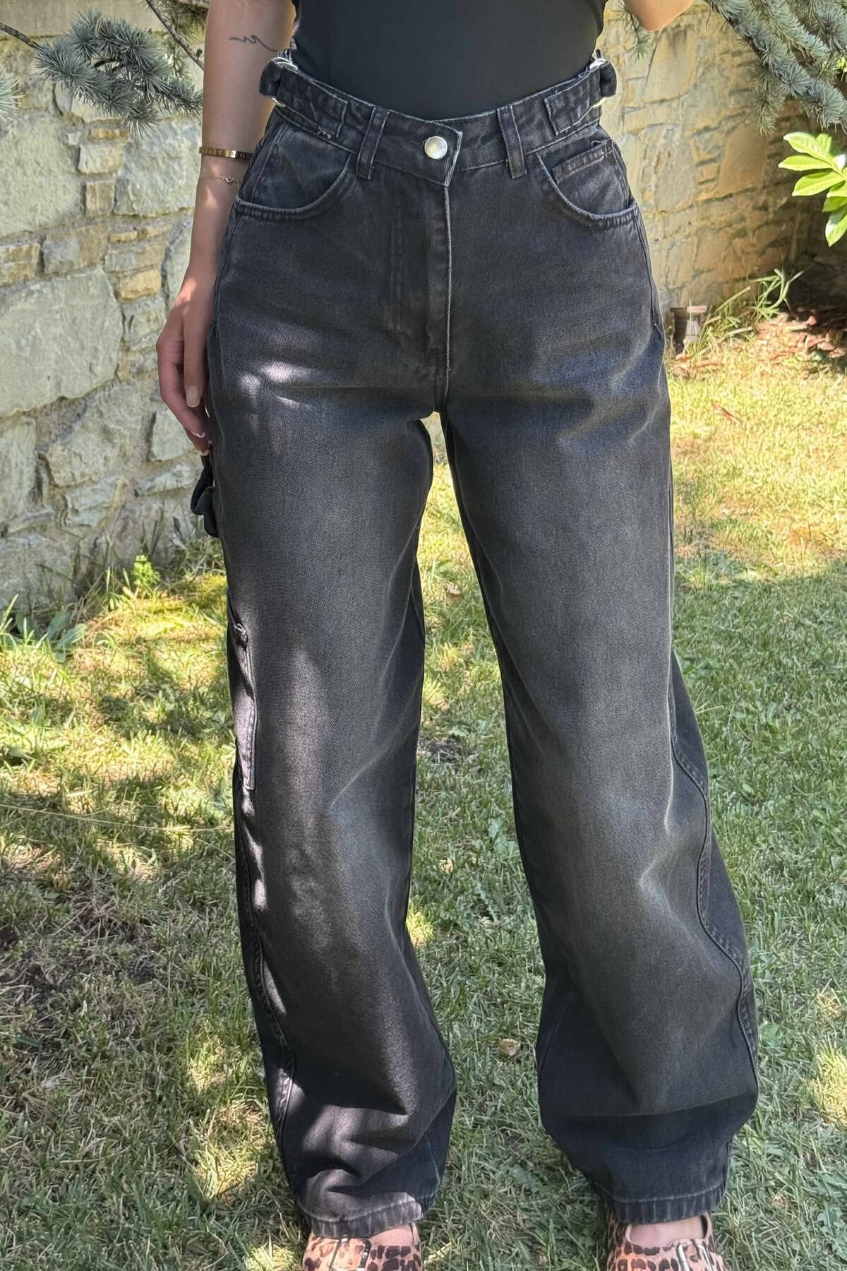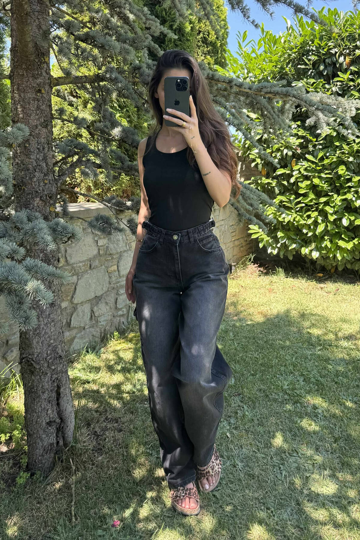 XHINSE TË GJERA ME DETAJIN E RRIPIT PËR FEMRA NË NGJYRËN E ZEZË