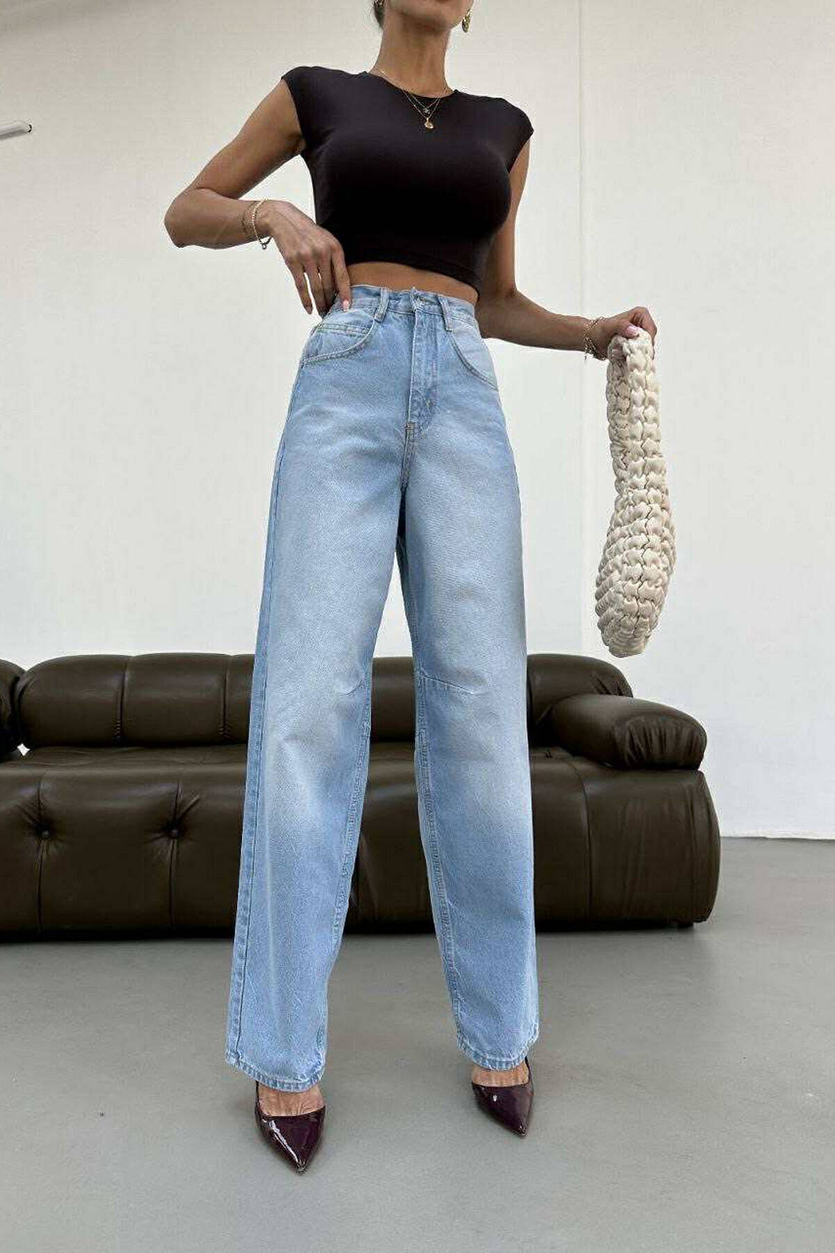 WIDE LEG ONE COLOR WOMEN JEANS DARK BROWN/KAE