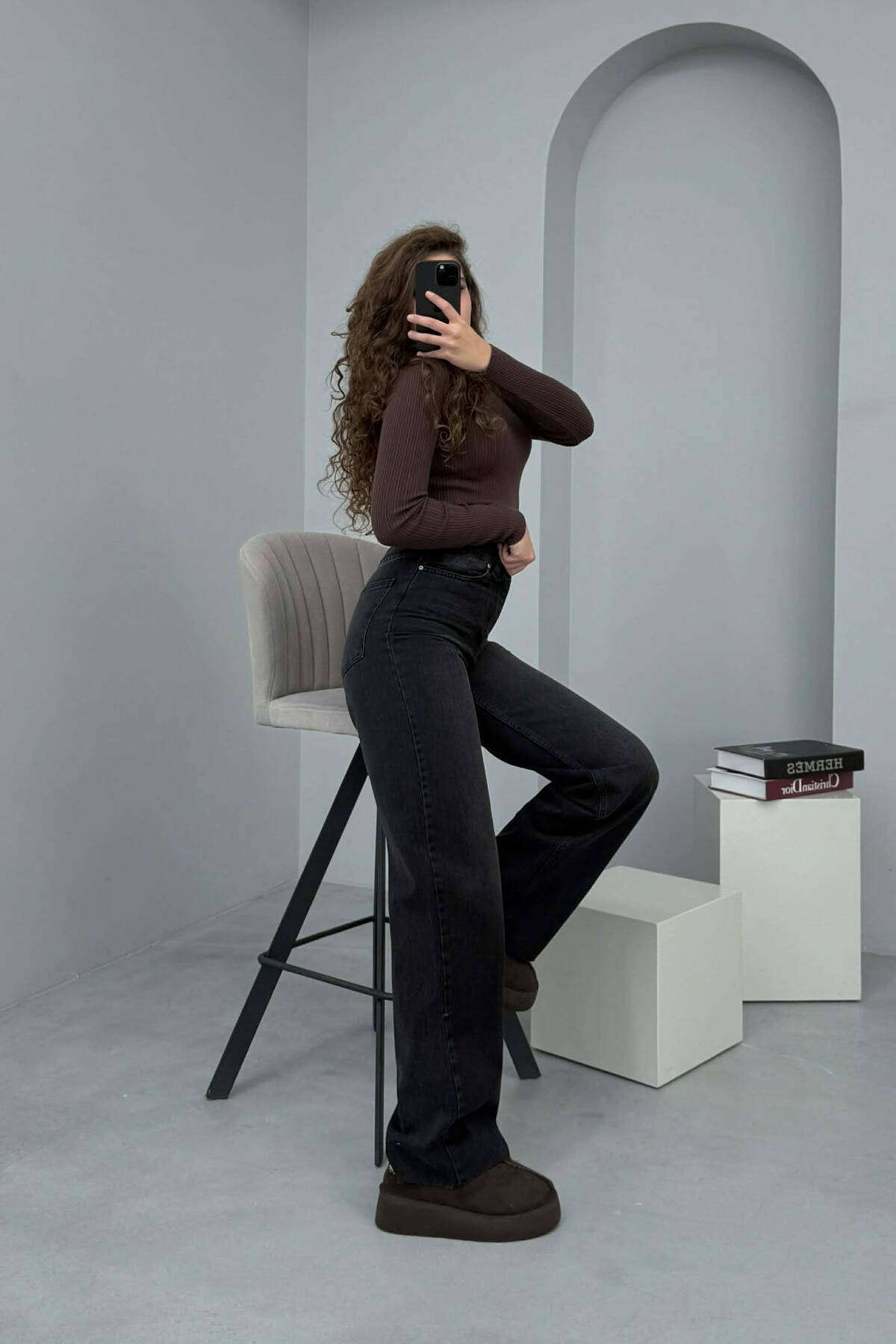 WIDE LEG WOMEN JEANS DARK GREY/GEE
