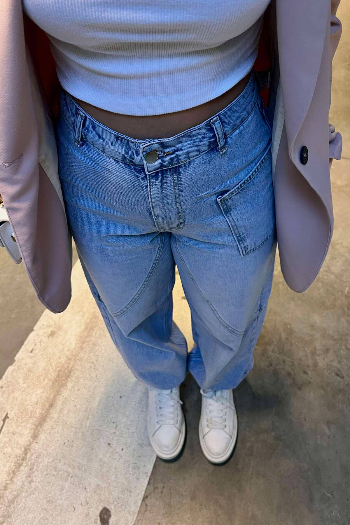 XHINSE TË GJERA PËR FEMRA NË NGJYRËN BLU E ZBARDHUR