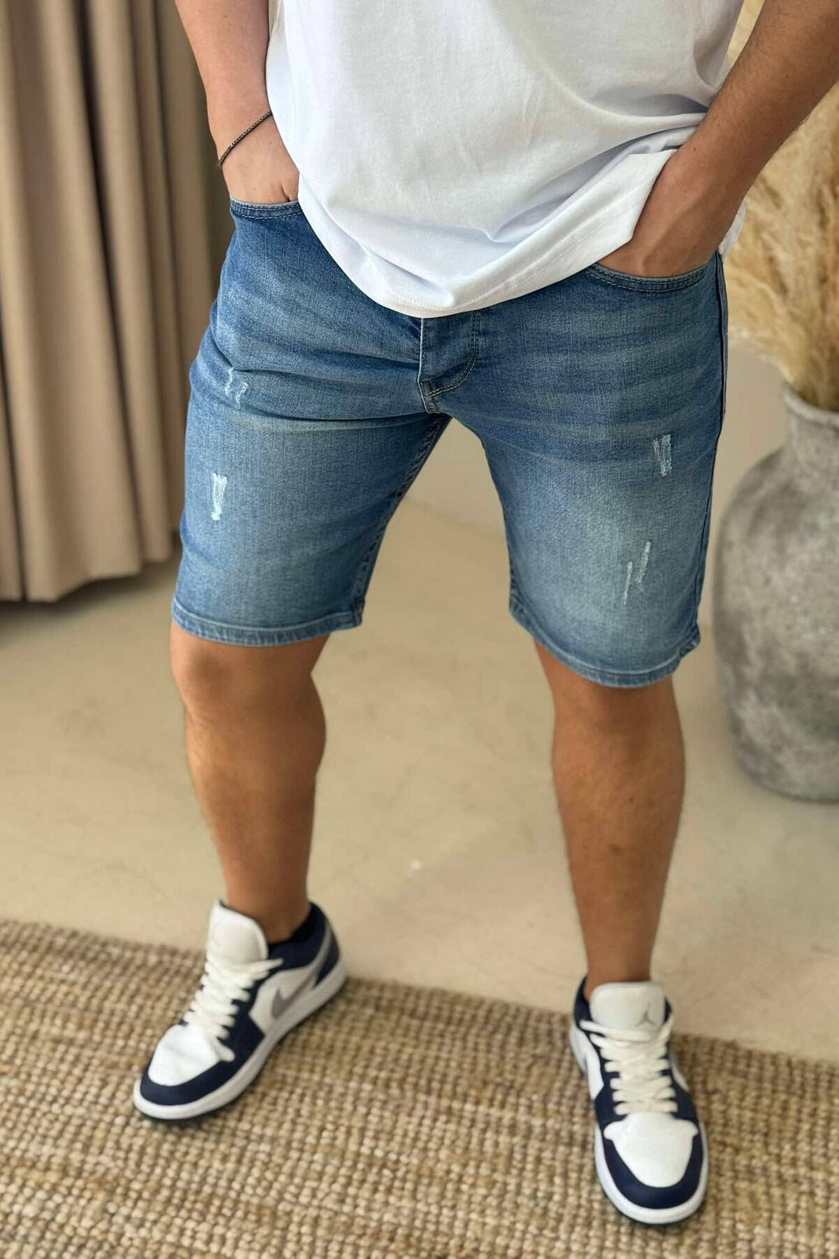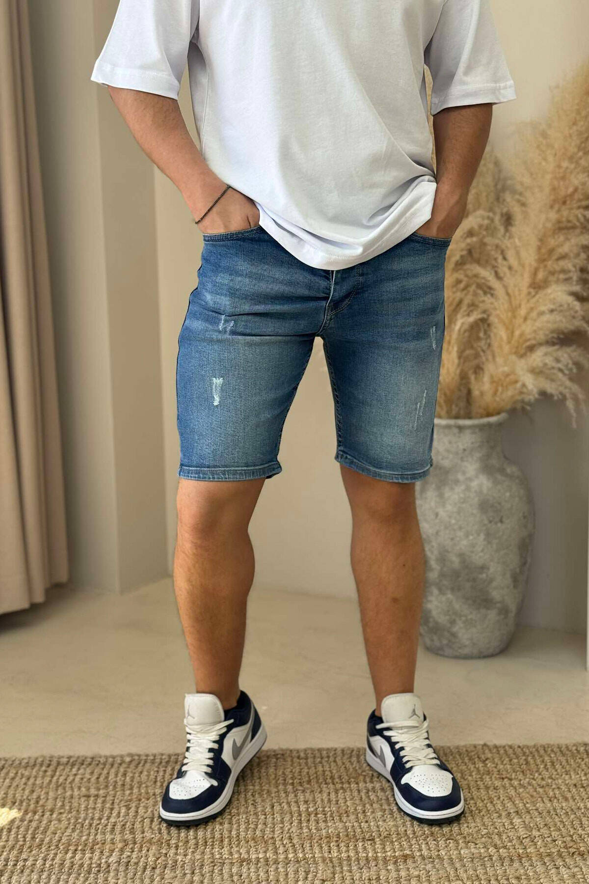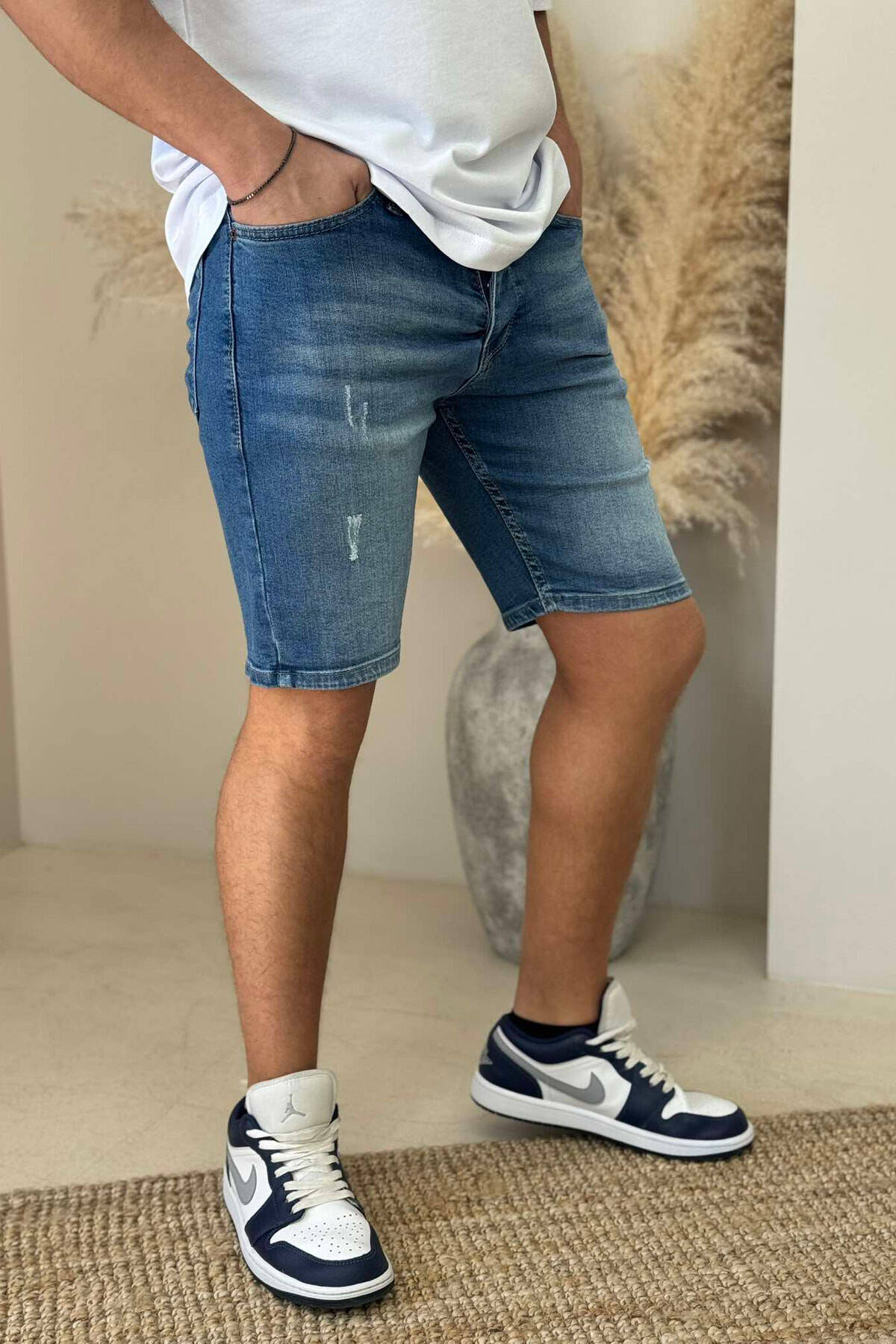 XHINSE TË SHKURTRA ME GËRVISHTJE PËR MESHKUJ NË NGJYRËN BLU