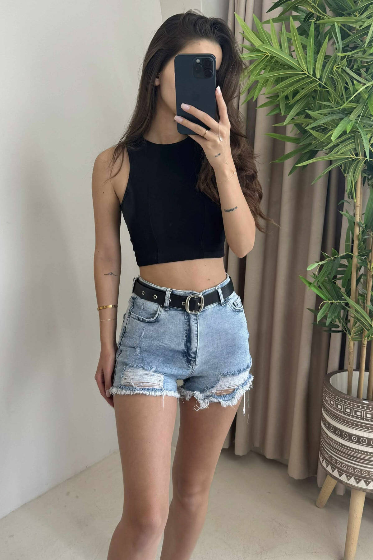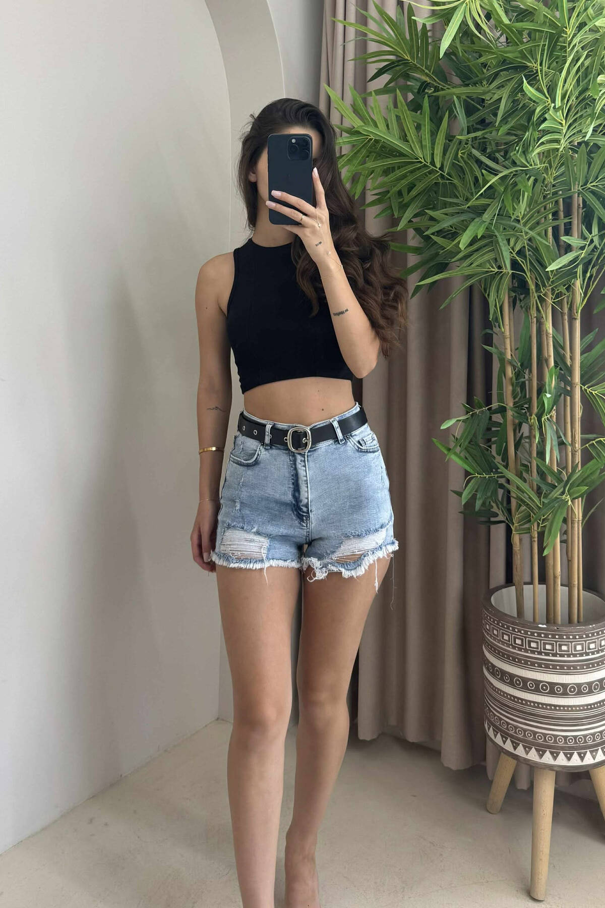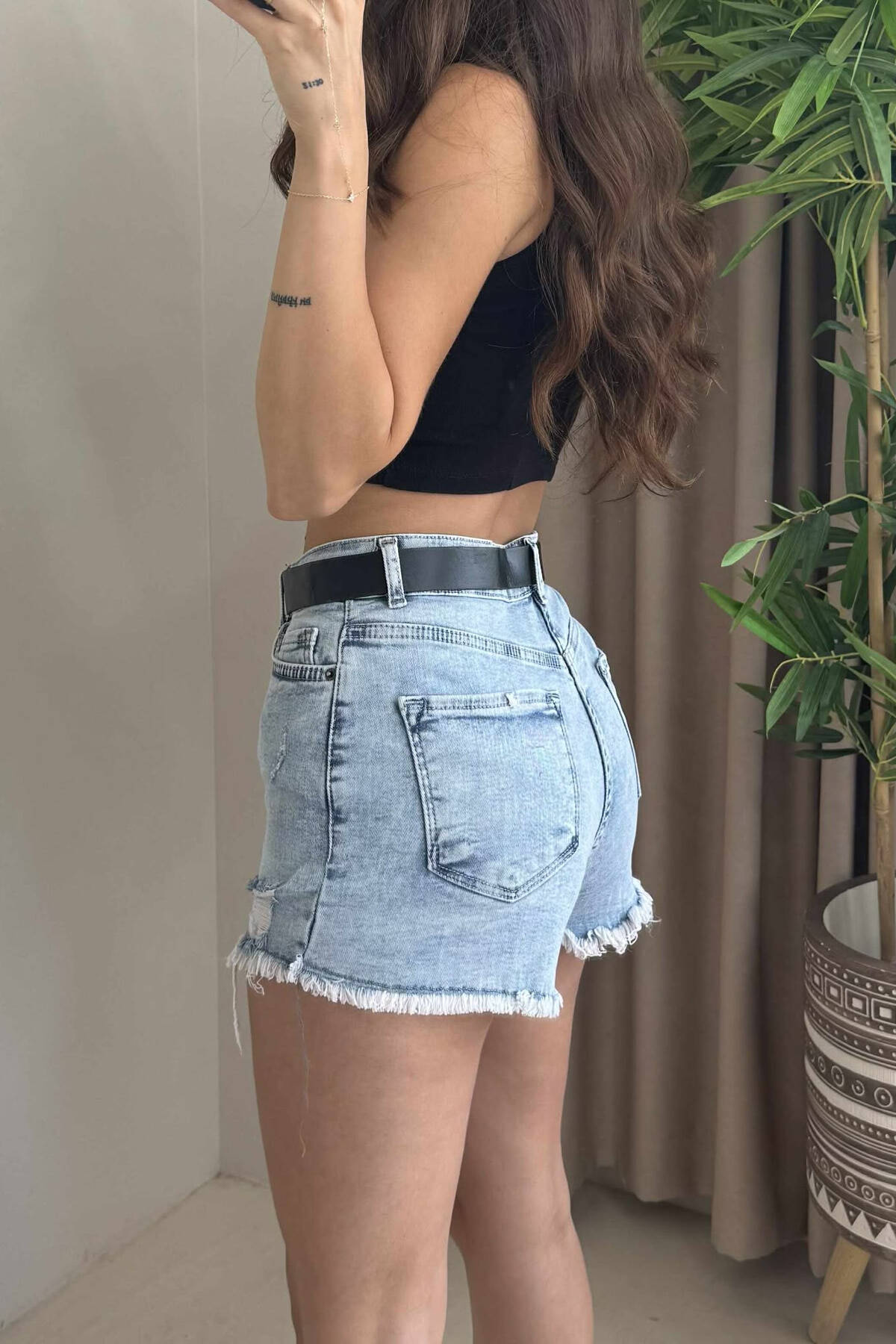 RIPPED KNEE HIGH WAIST DENIM WOMAN SHORTS LIGHTBLUE/BZ