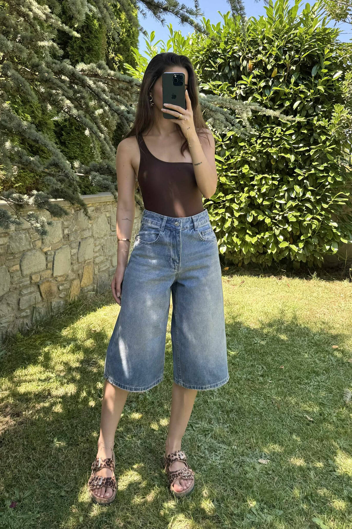 XHINSE TË SHKURTRA NJË NGJYRËSHE PËR FEMRA NË NGJYRËN BLU