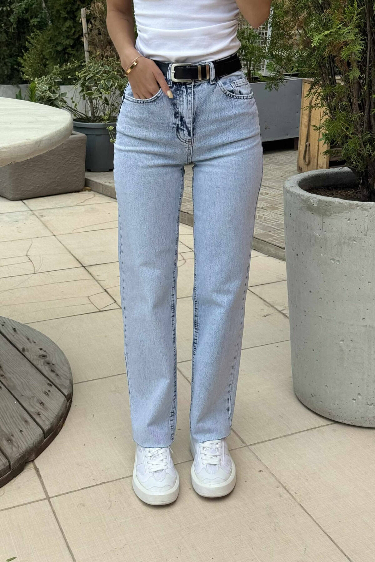 XHINSE TË THJESHTA ME DETAJIN E RRIPIT PËR FEMRA NË NGJYRËN BLU E ZBARDHUR