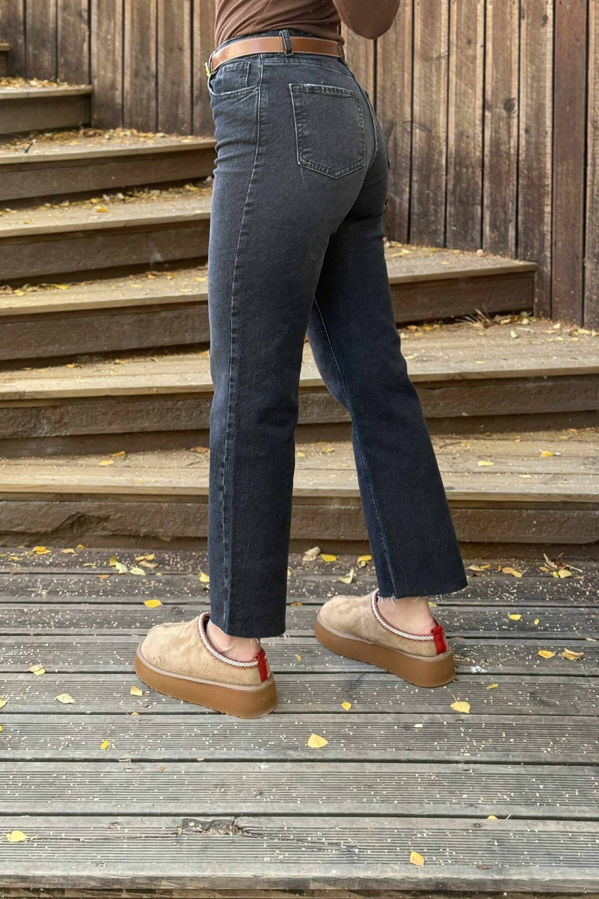XHINSE TË THJESHTA ME DETAJIN E RRIPIT PËR FEMRA NË NGJYRËN GRI TË ERRËT