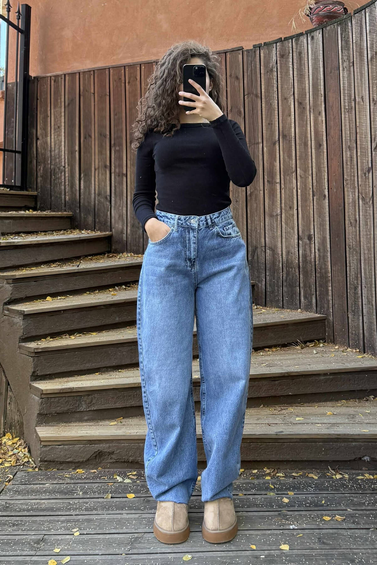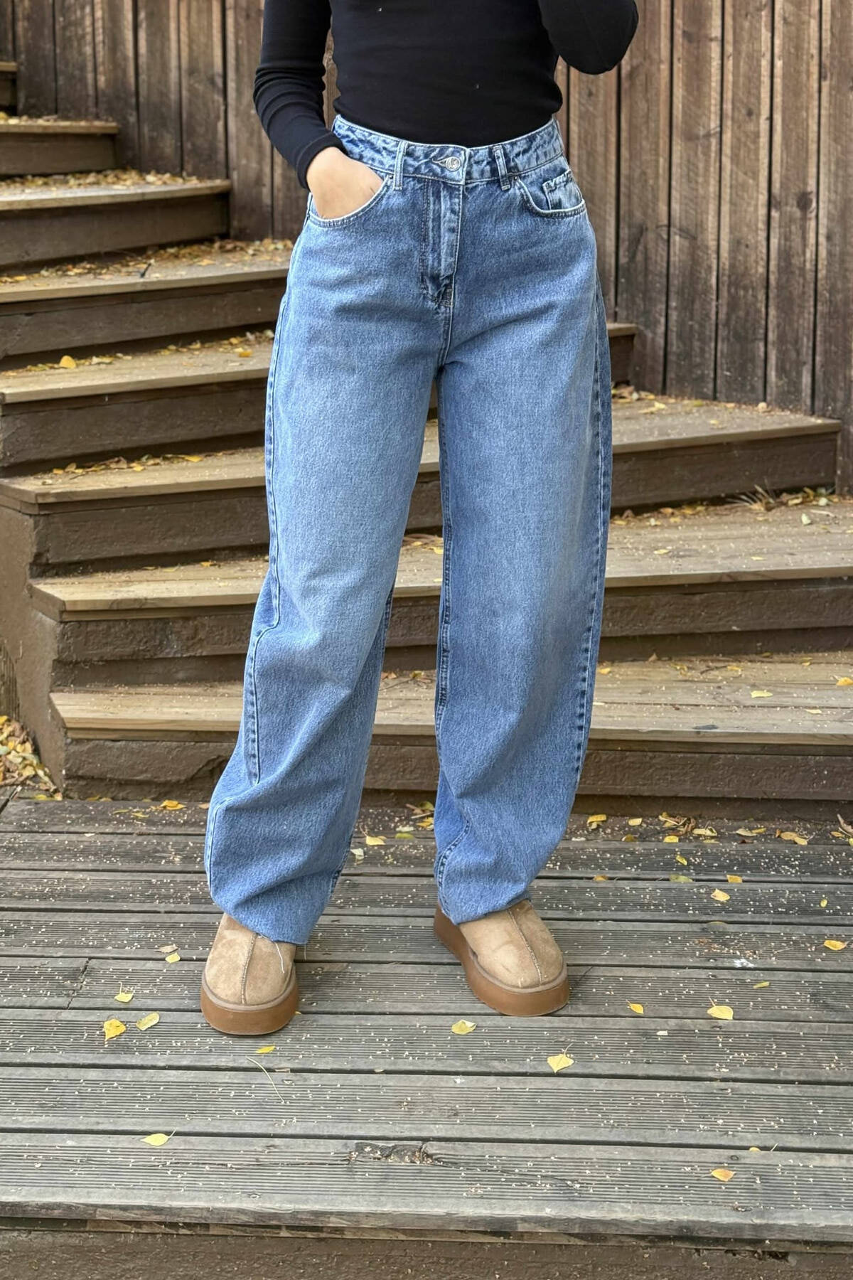 ONE COLOR SIMPLE WIDE LEG WOMEN JEANS BLUE/BLU