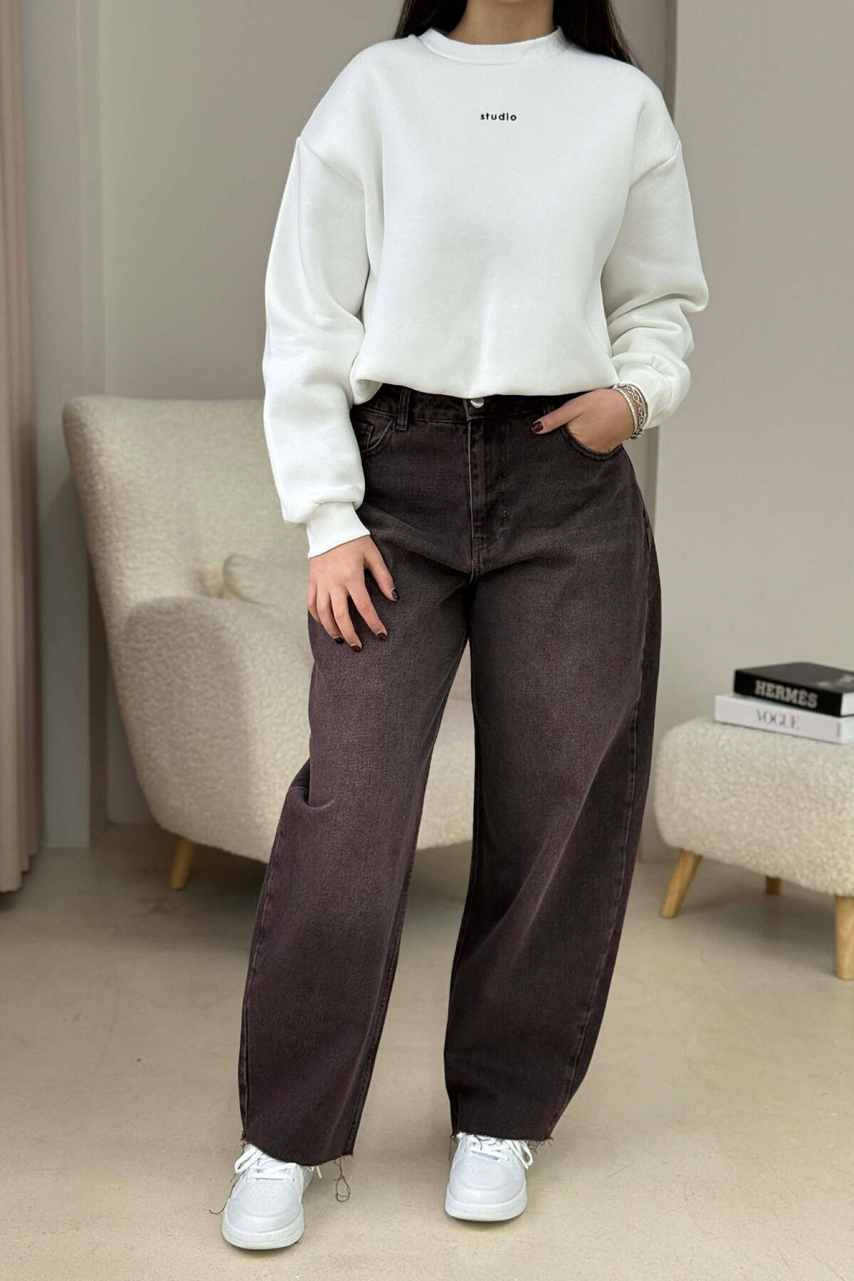 WIDE LEG ONE COLOR WOMEN JEANS BROWN/KAFE