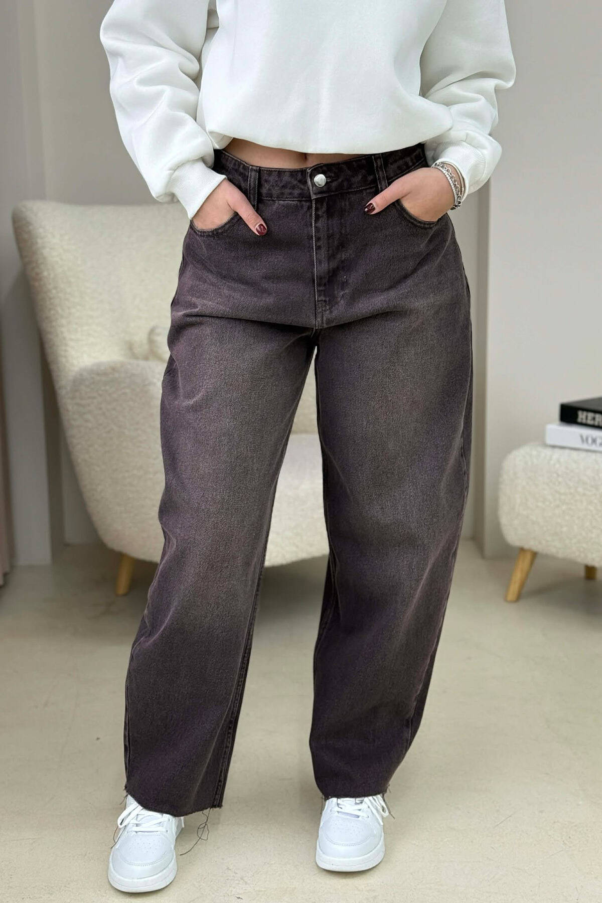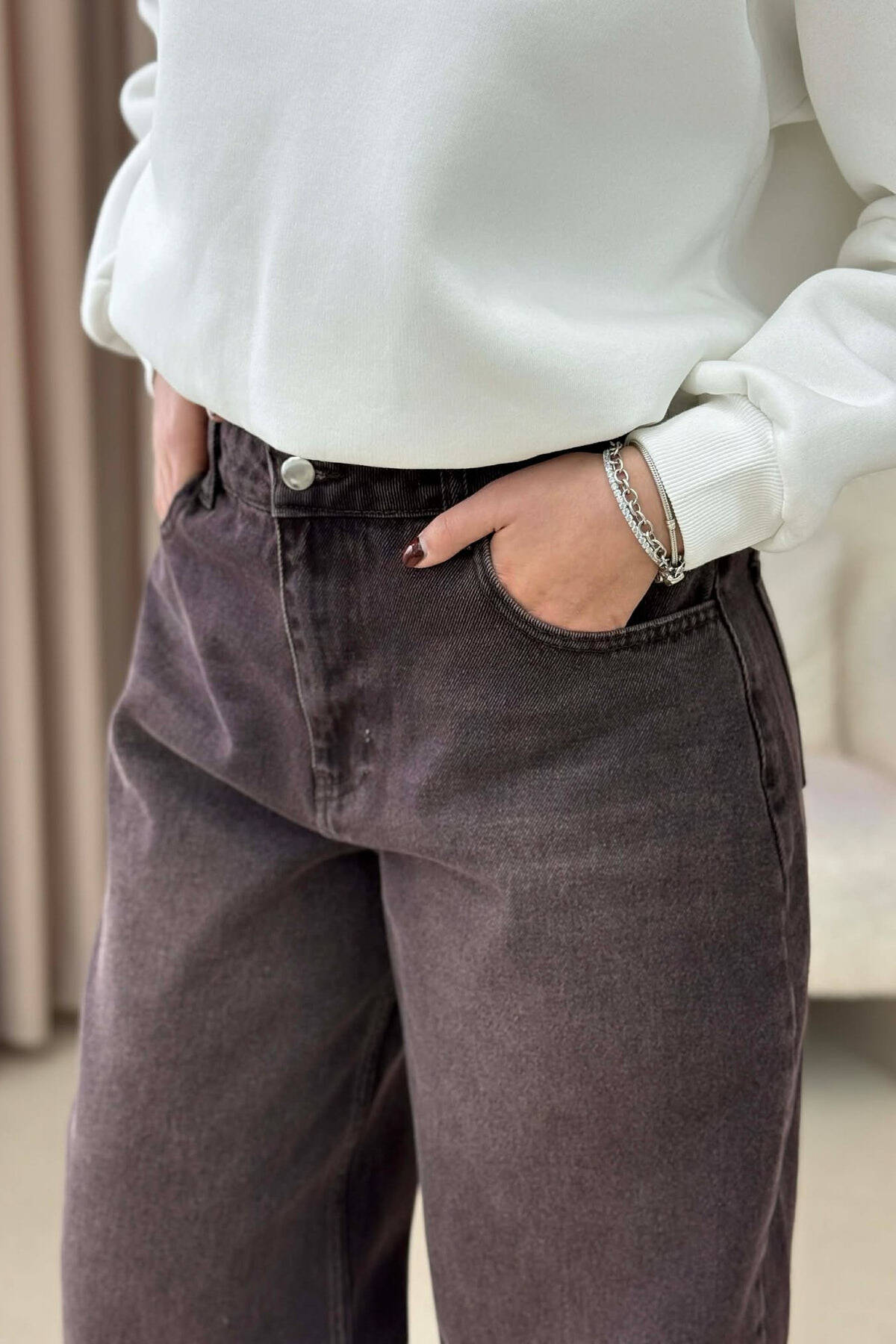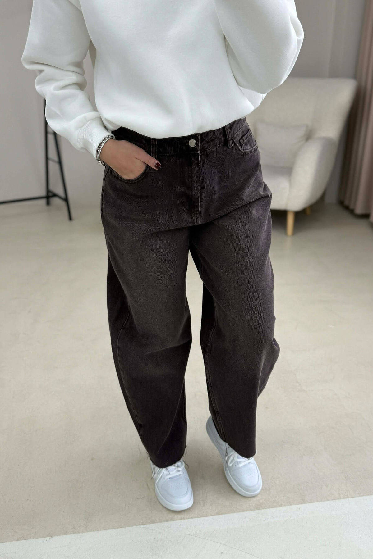 WIDE LEG ONE COLOR WOMEN JEANS DARK BROWN/KAE