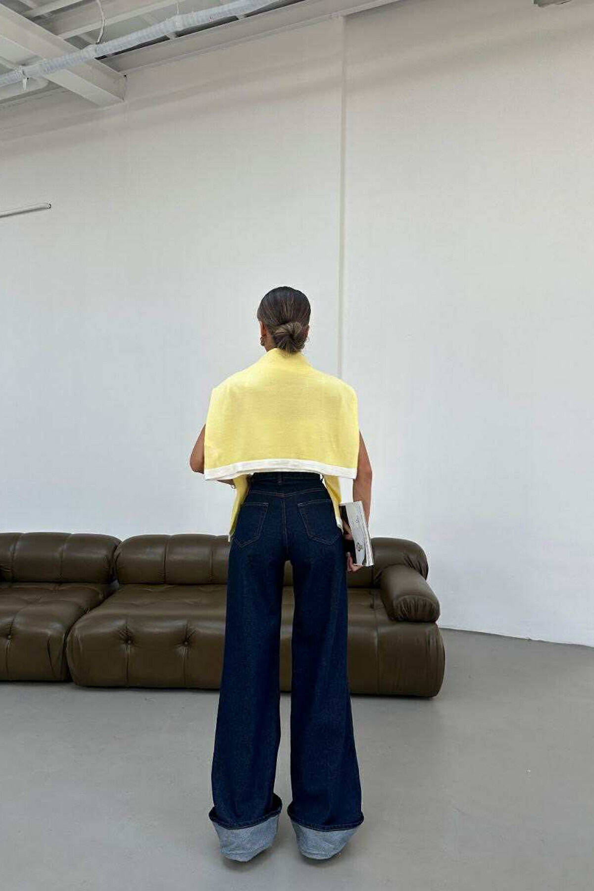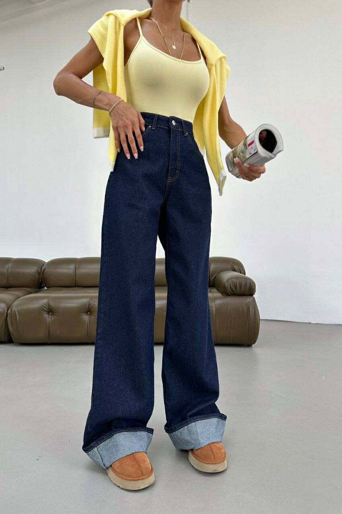 WIDE LEG ONE COLOR WOMEN JEANS DARK BLUE/BEE