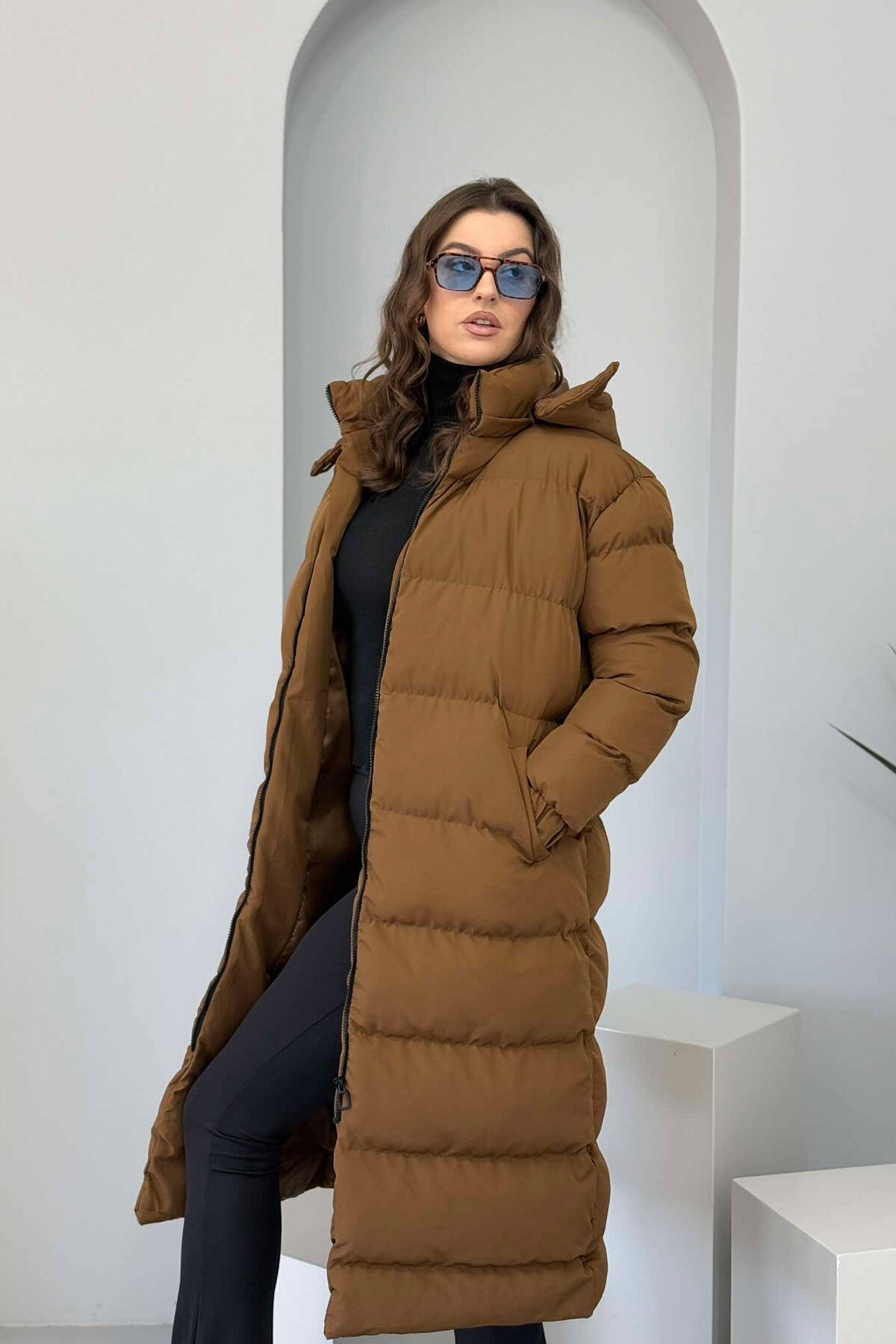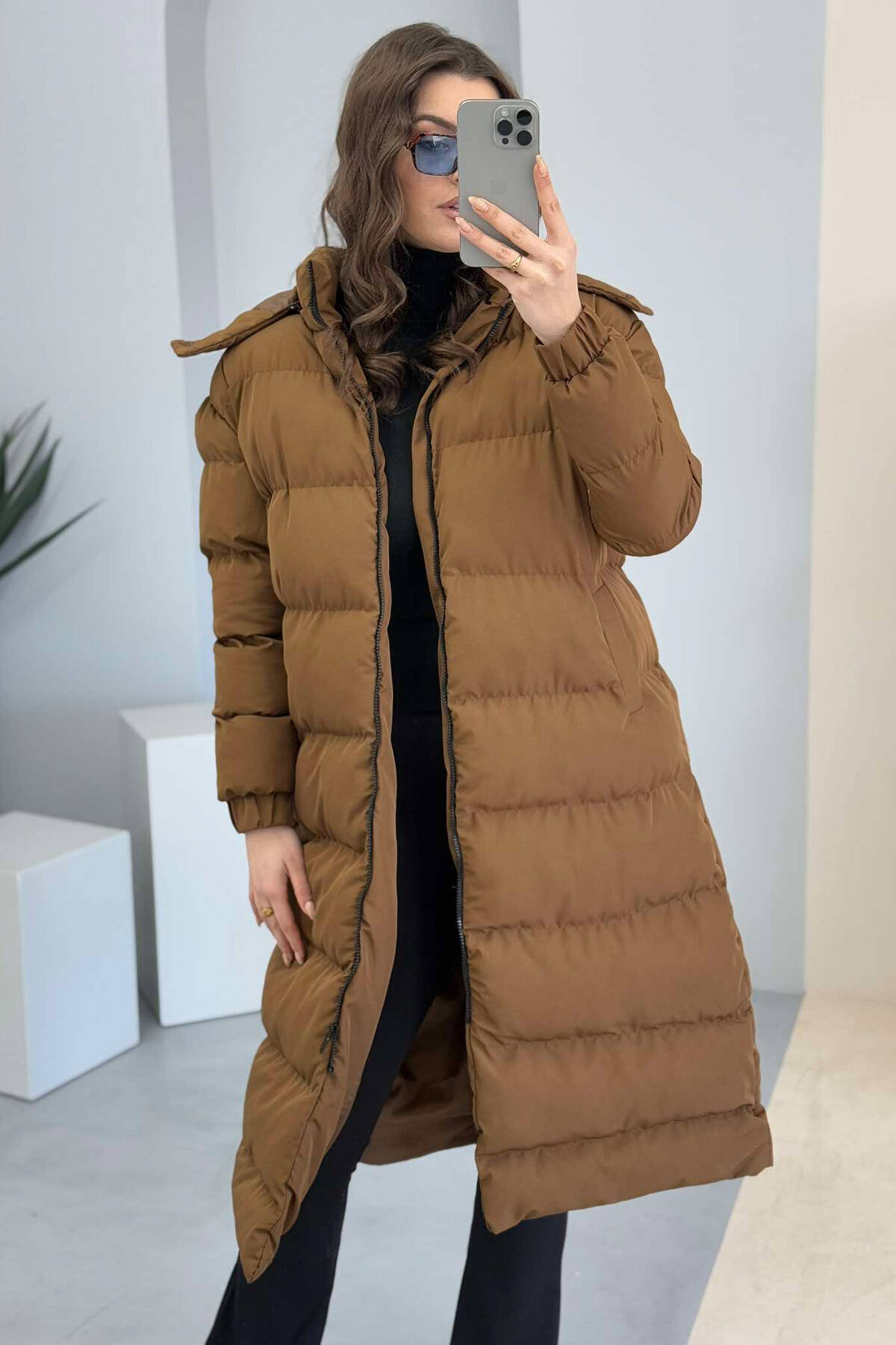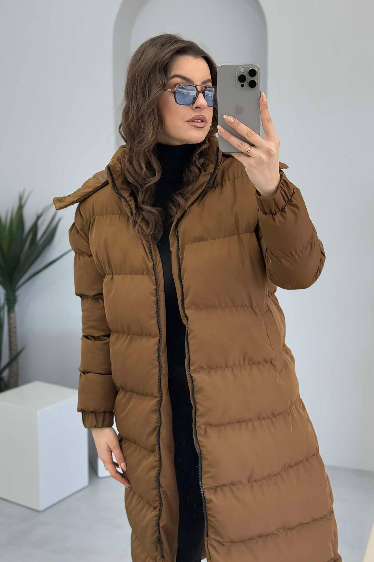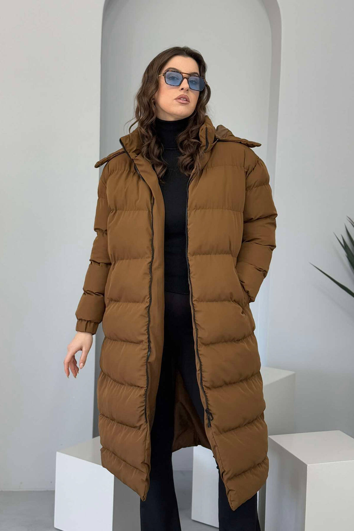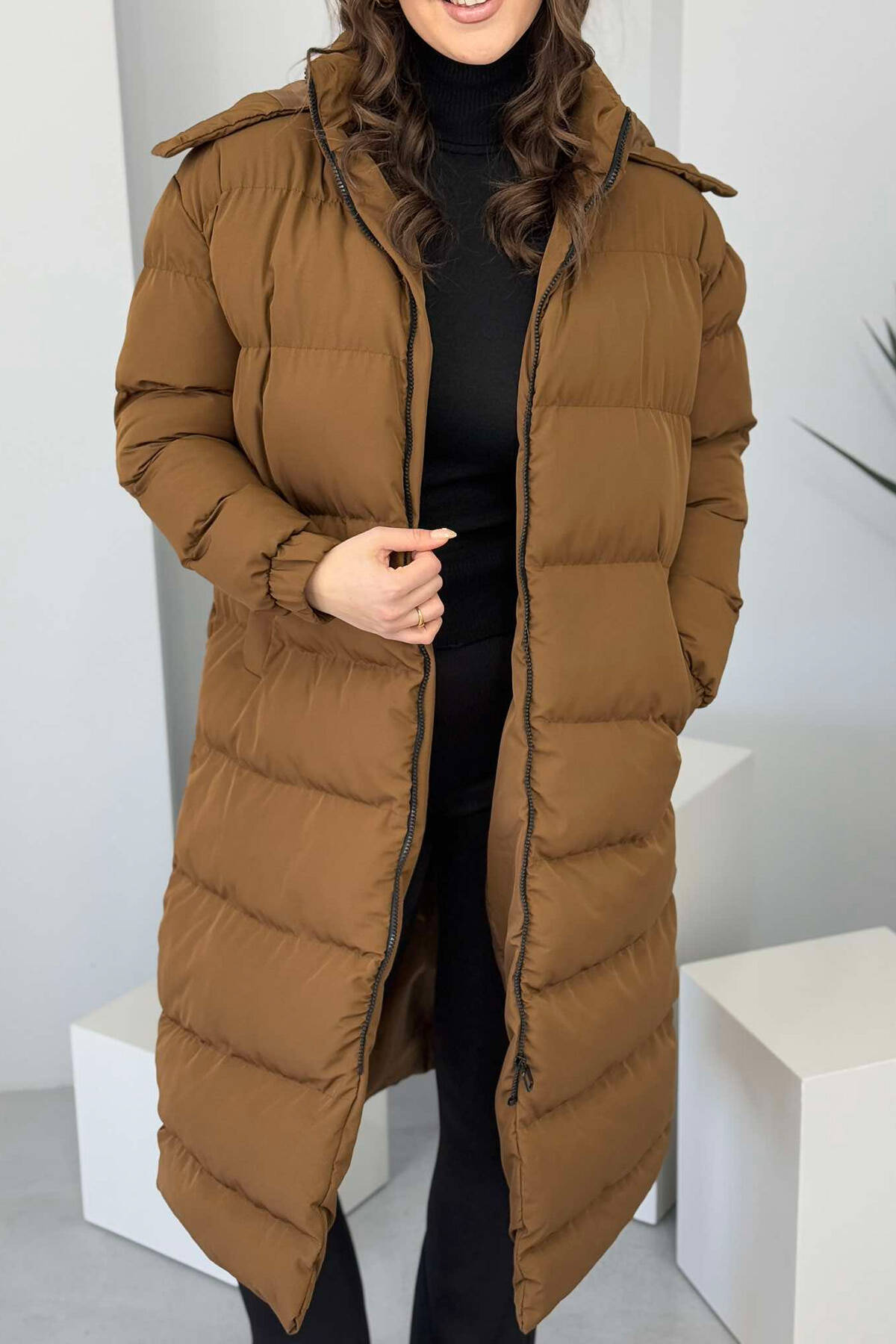 XHUP I GJATË ME KAPUC PËR FEMRA NË NGJYRËN KAFE