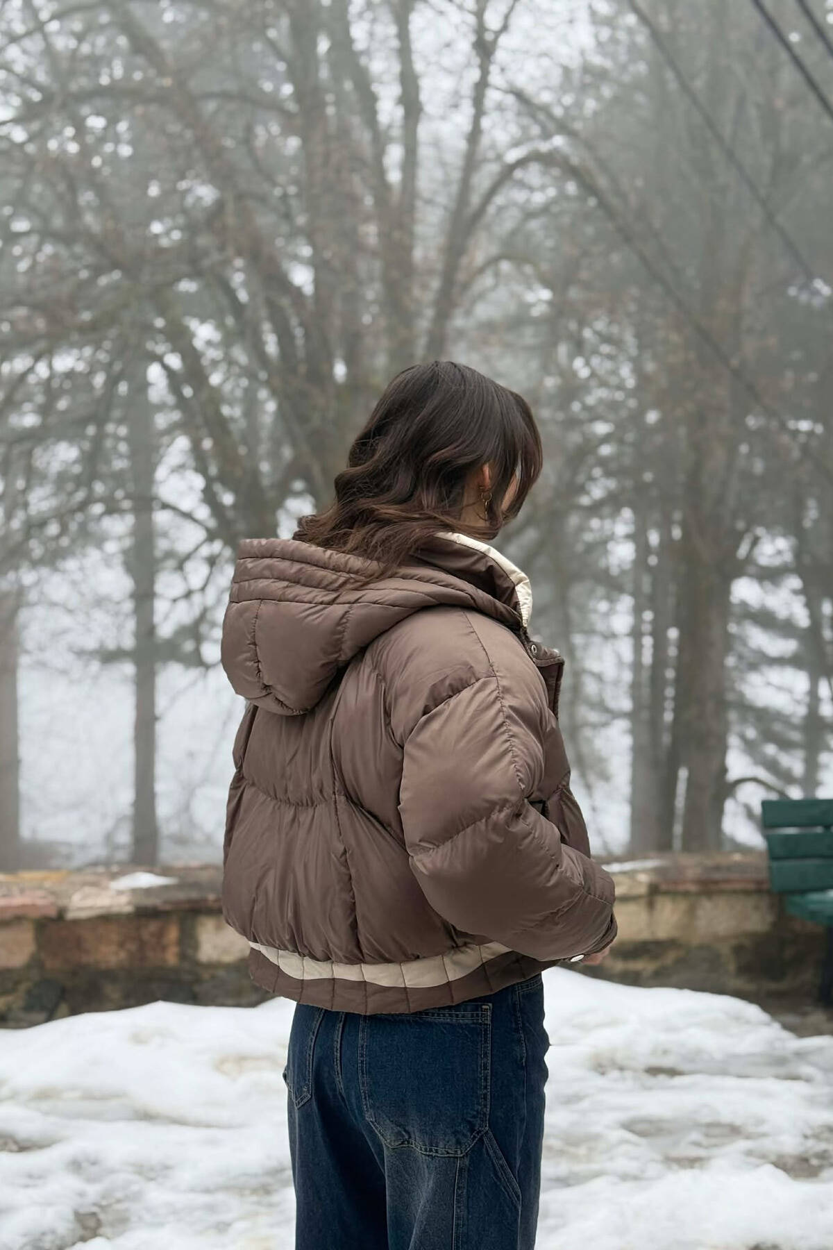 XHUP NJE NGJYRESH ME KAPUÇ DHE ZINXHIR PER FEMRA NE NGJYRE KAFE