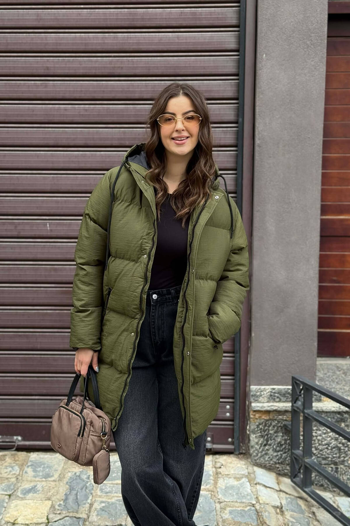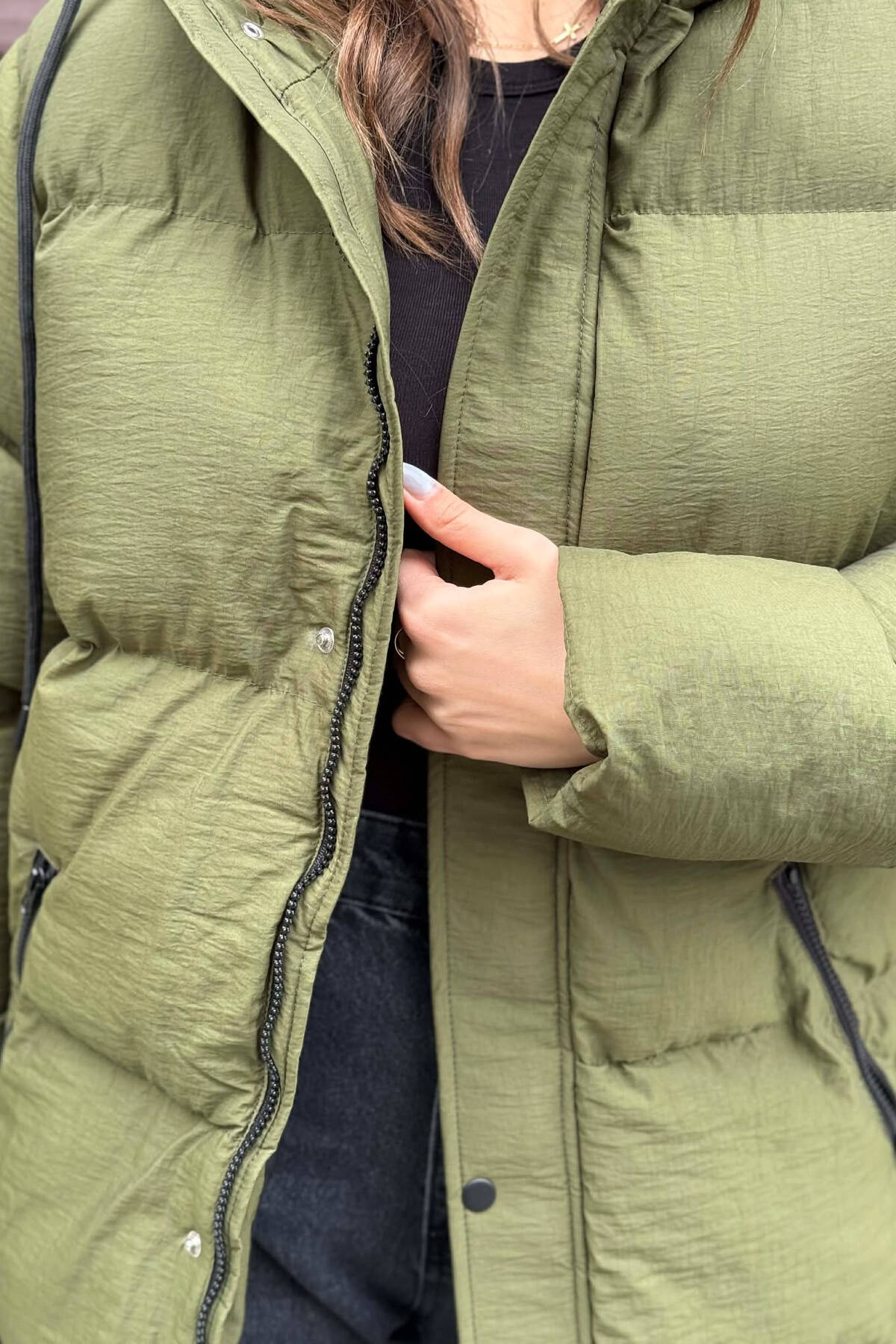 ZIPPERED WOMEN PUFFER JACKET GREEN/JESHILE