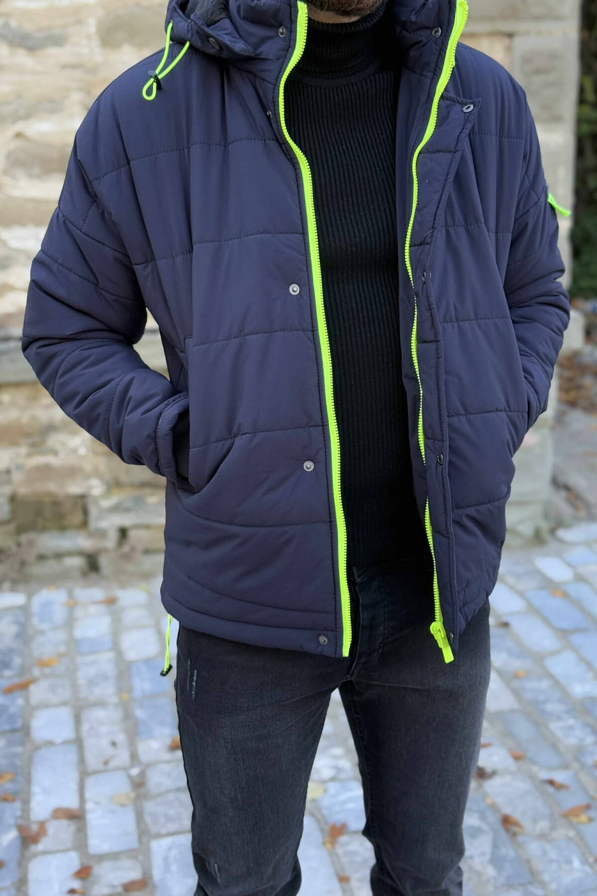XHUP ME KAPUÇ PËR MESHKUJ NË NGJYRË BLU TË ERRËT