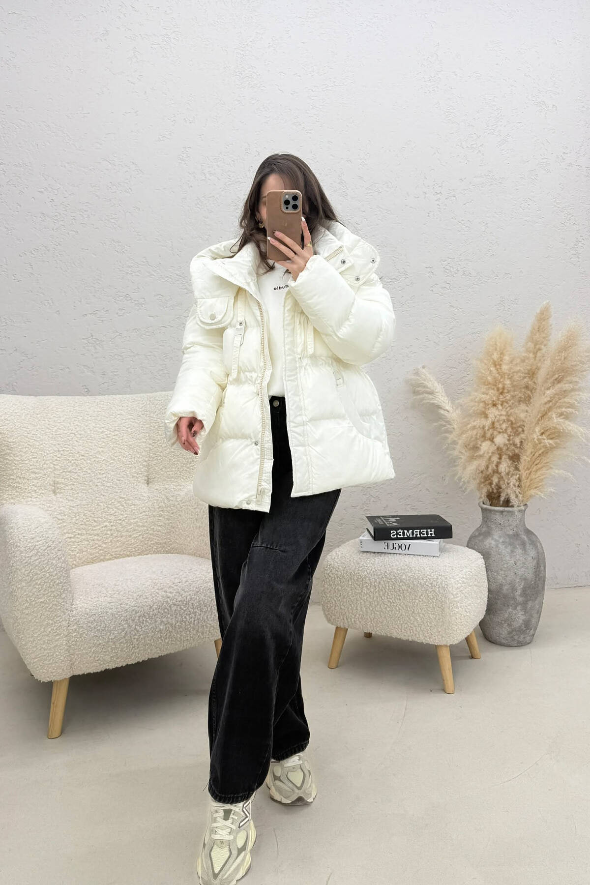 XHUP NJE NGJYRESH ME KAPUÇ DHE ZINXHIR PER FEMRA NE NGJYRE TE BARDHE