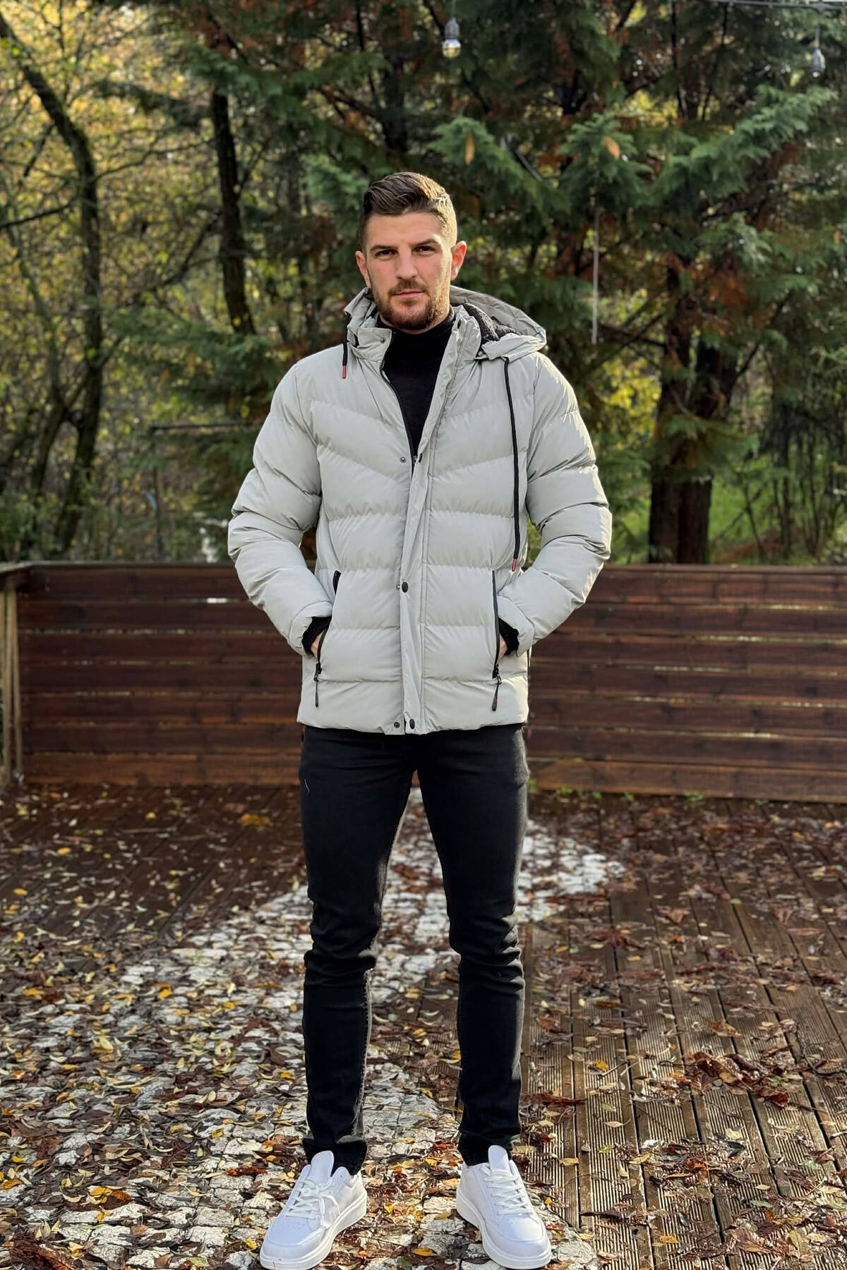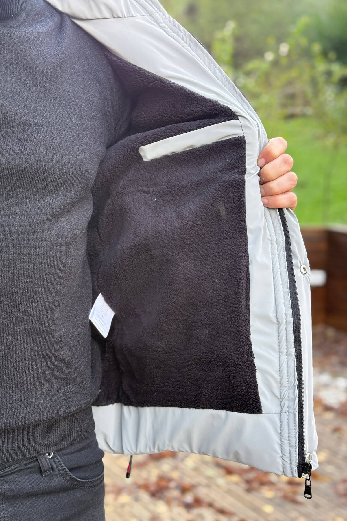 XHUP NJE NGJYRESH ME PUSH DHE KAPUÇ PER MESHKUJ NE NGJYRE GRI TE ZBARDHUR