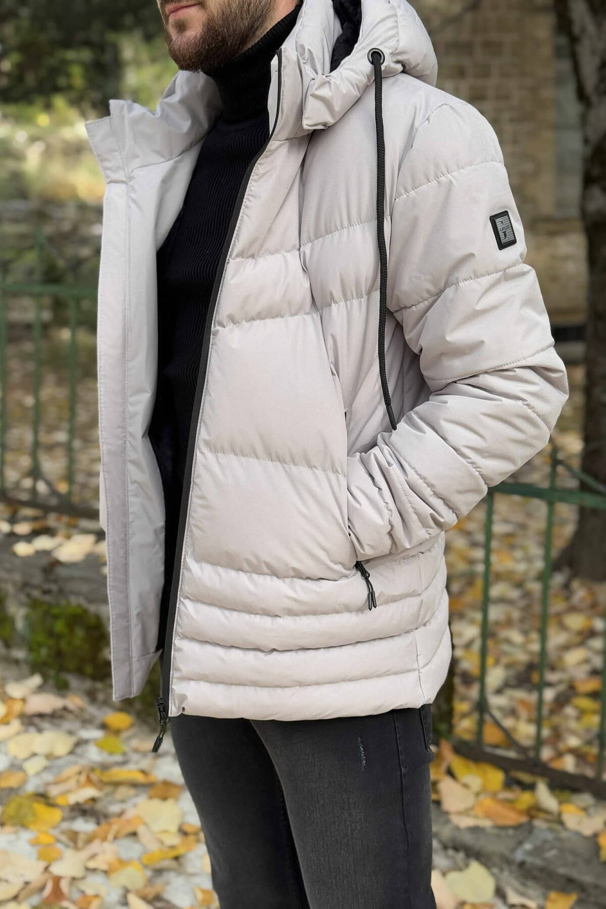 Xhup Një Ngjyrësh Me Push Për Meshkuj Në Ngjyrën Gri E Zbardhur