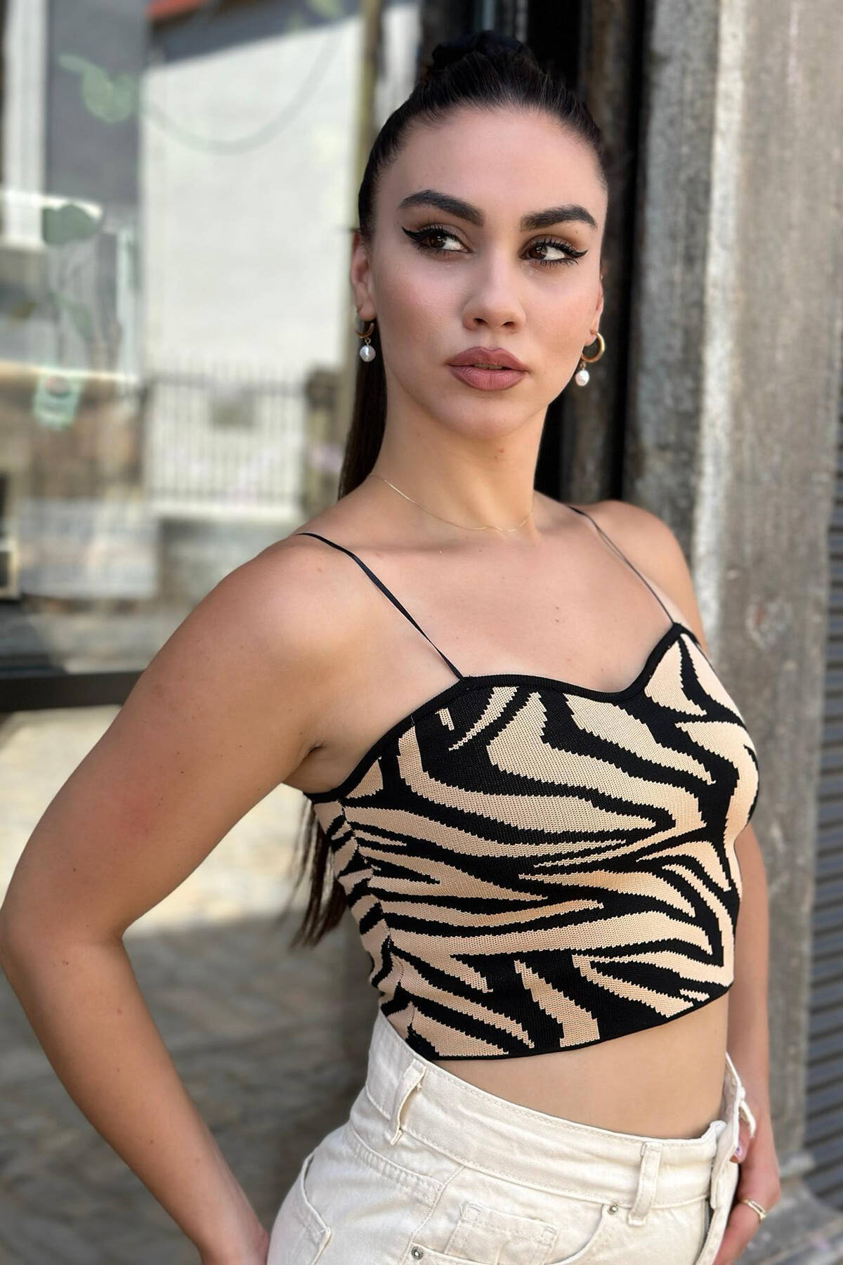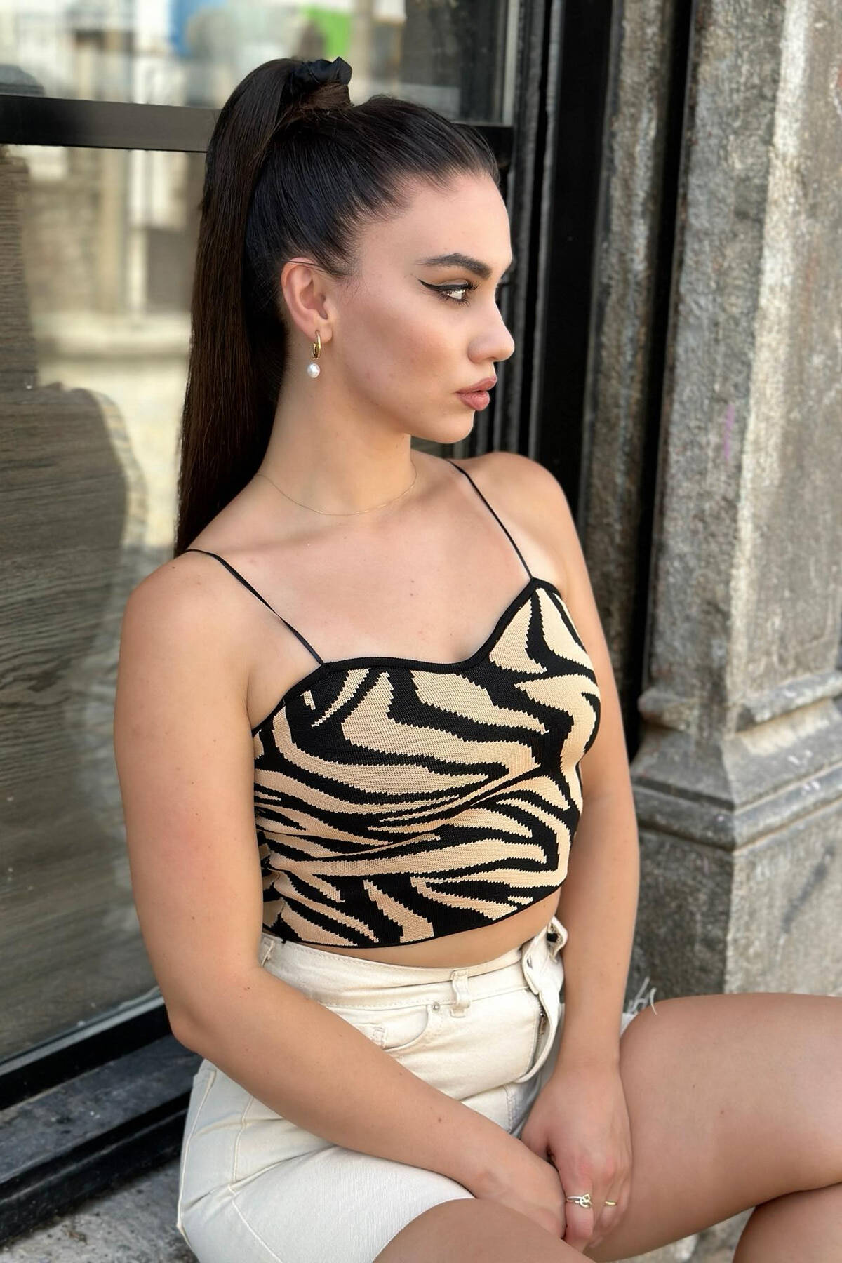 ZEBRA PATTERN WOMEN TANK TOP BEIGE/BEZHE