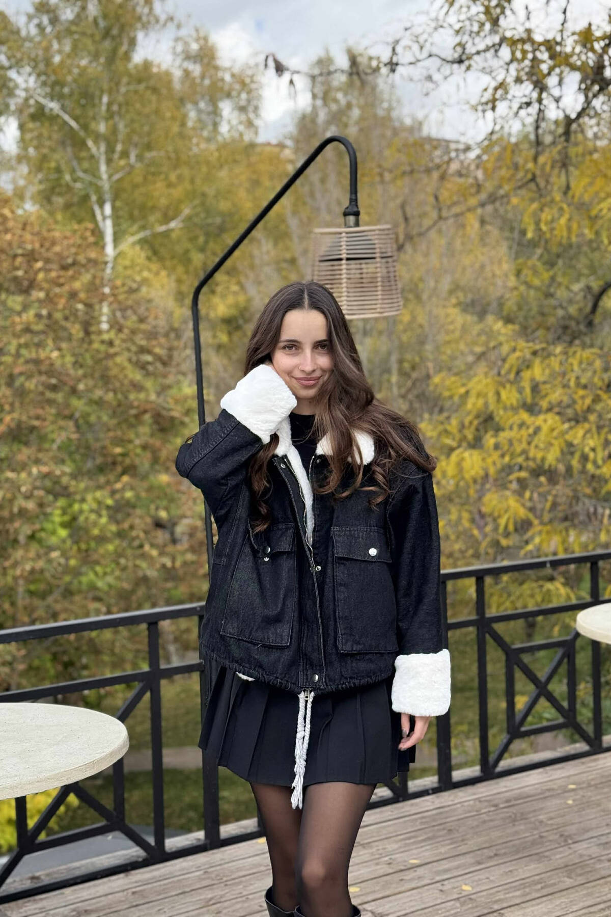 ZIPPER BUTTONS WOMAN DENIM JACKET IN BLACK COLOR