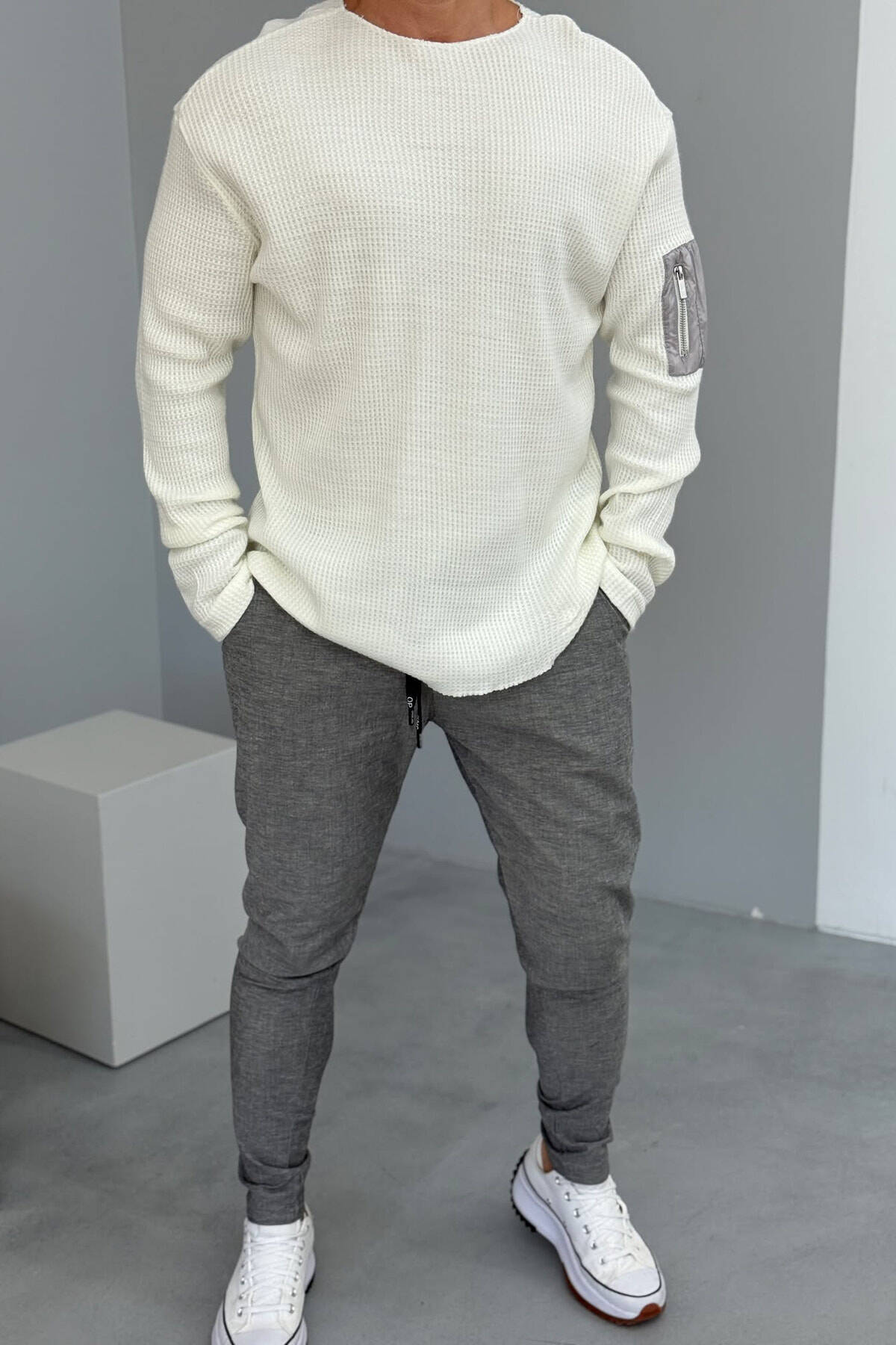 ZIPPER DETAIL ONE COLOR MEN SWEATSHIRT CREAM/KREM