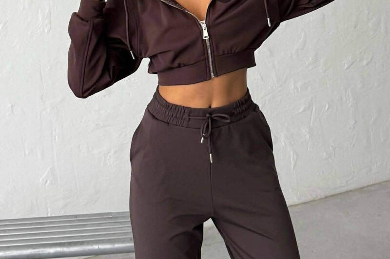 ZIPPER JACKET + SWEATPANTS WOMAN SET BROWN/KAFE