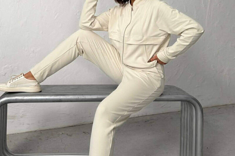 ZIPPER JACKET + SWEATPANTS WOMAN SET CREAM/KREM