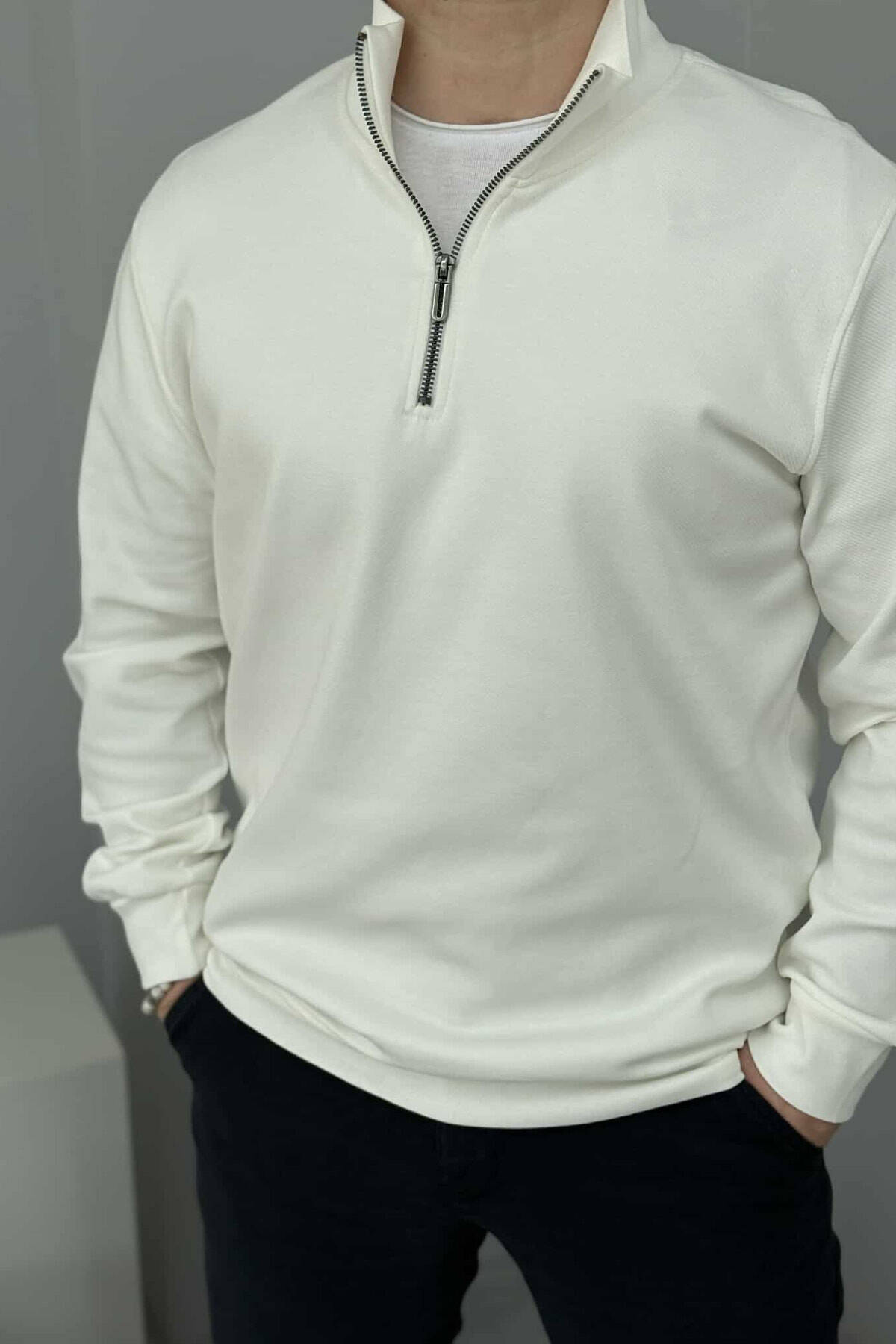ZIPPER NECK ONE COLOR MEN SWEATSHIRT WHITE-E BARDHE